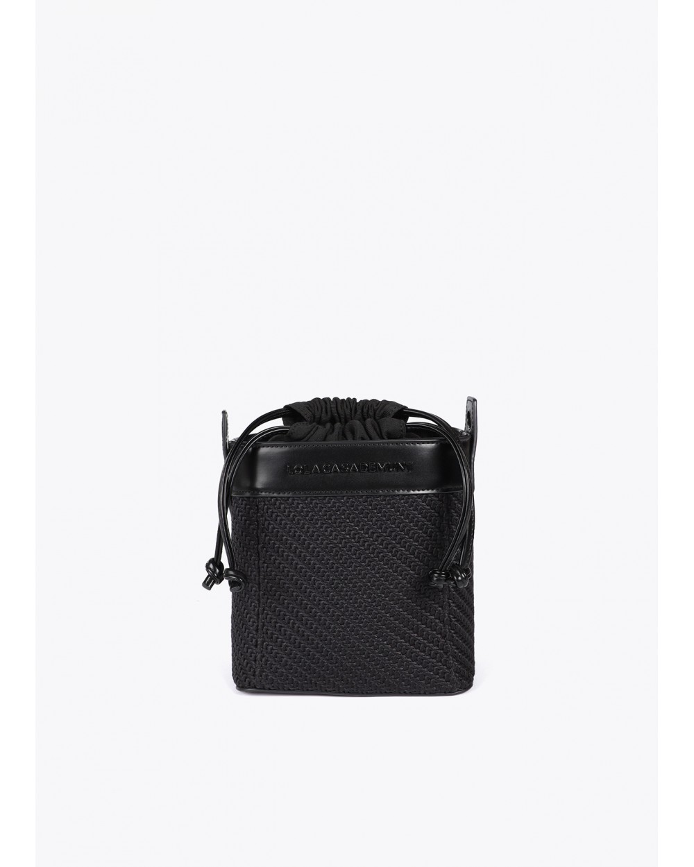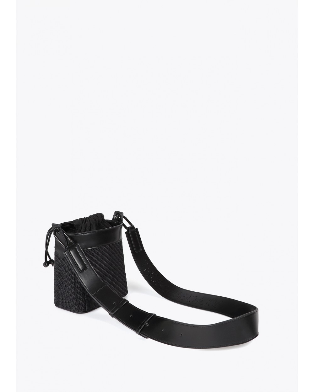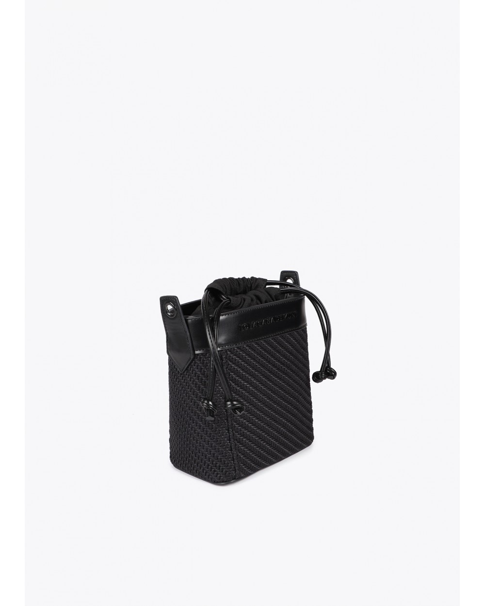 Bolso bandolera tipo bombonera en tejido texturizado y efecto piel. Cierre con cordón ajustable y una correa extensible para el hombro.