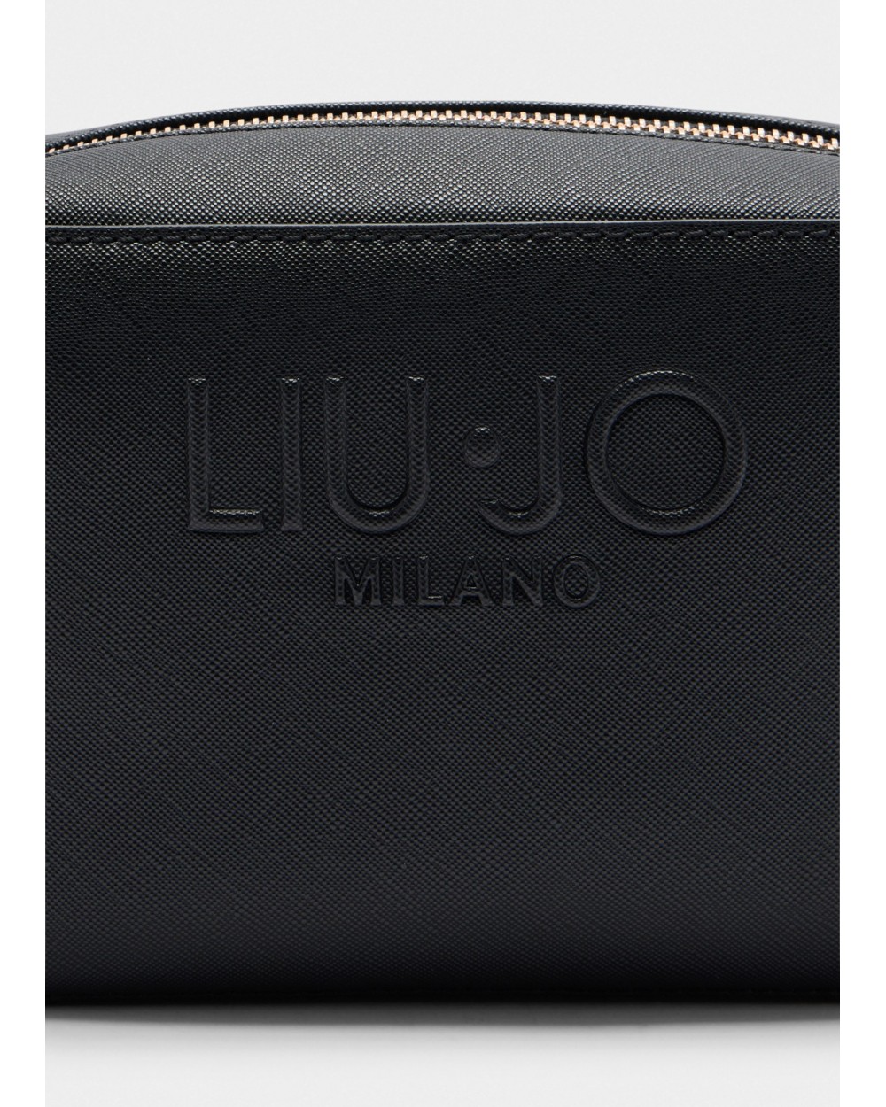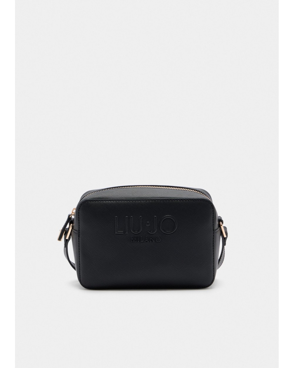Bolso bandolera negra con logo en relieve, Cierre de cremallera, Forro interior con logo