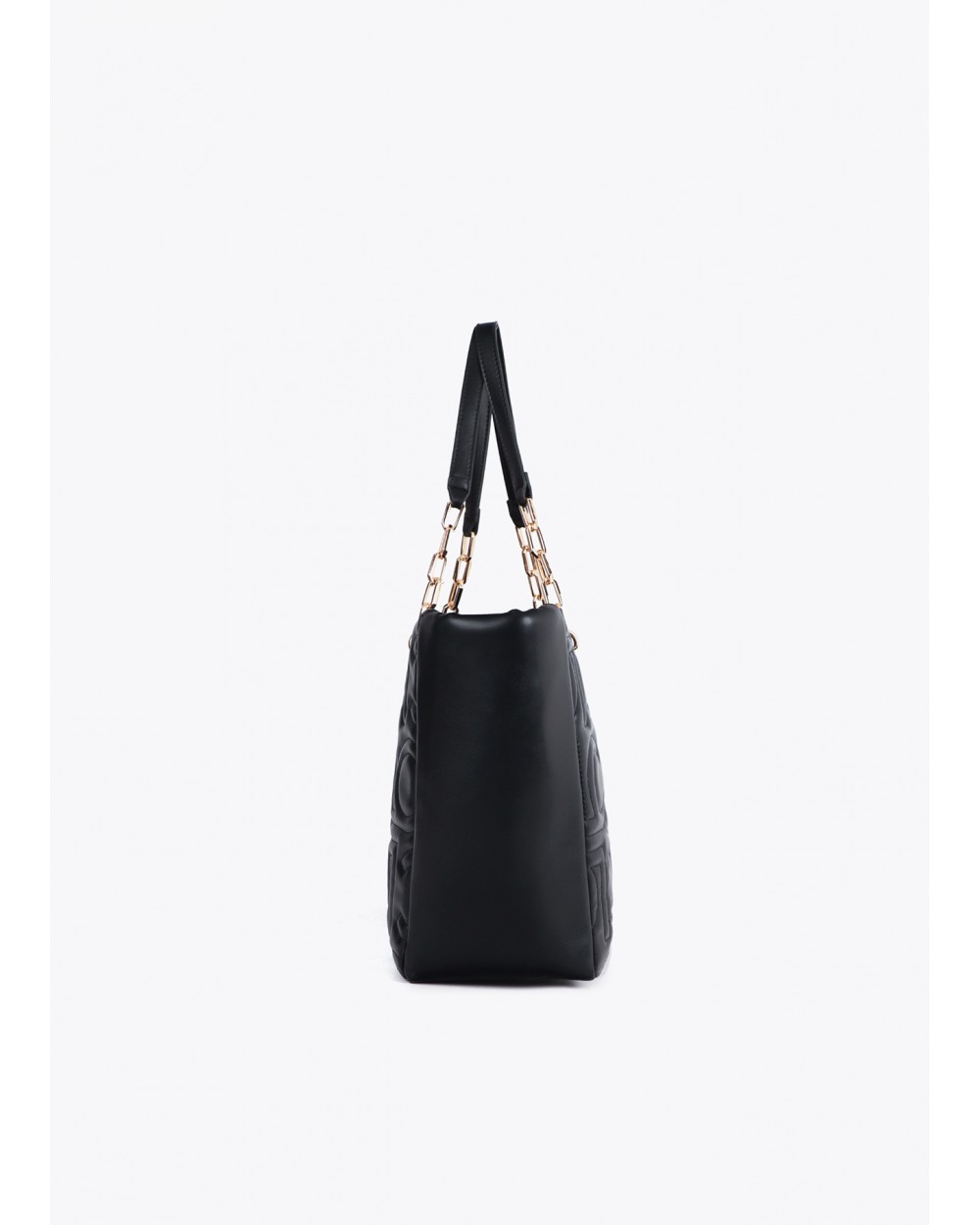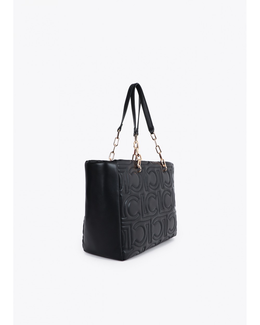 Bolso shopper de efecto piel con diseño acolchado y logotipo. Asa mixta de cadena y material sintético para un look sofisticado. Compartimento amplio con cierre de cremallera.
