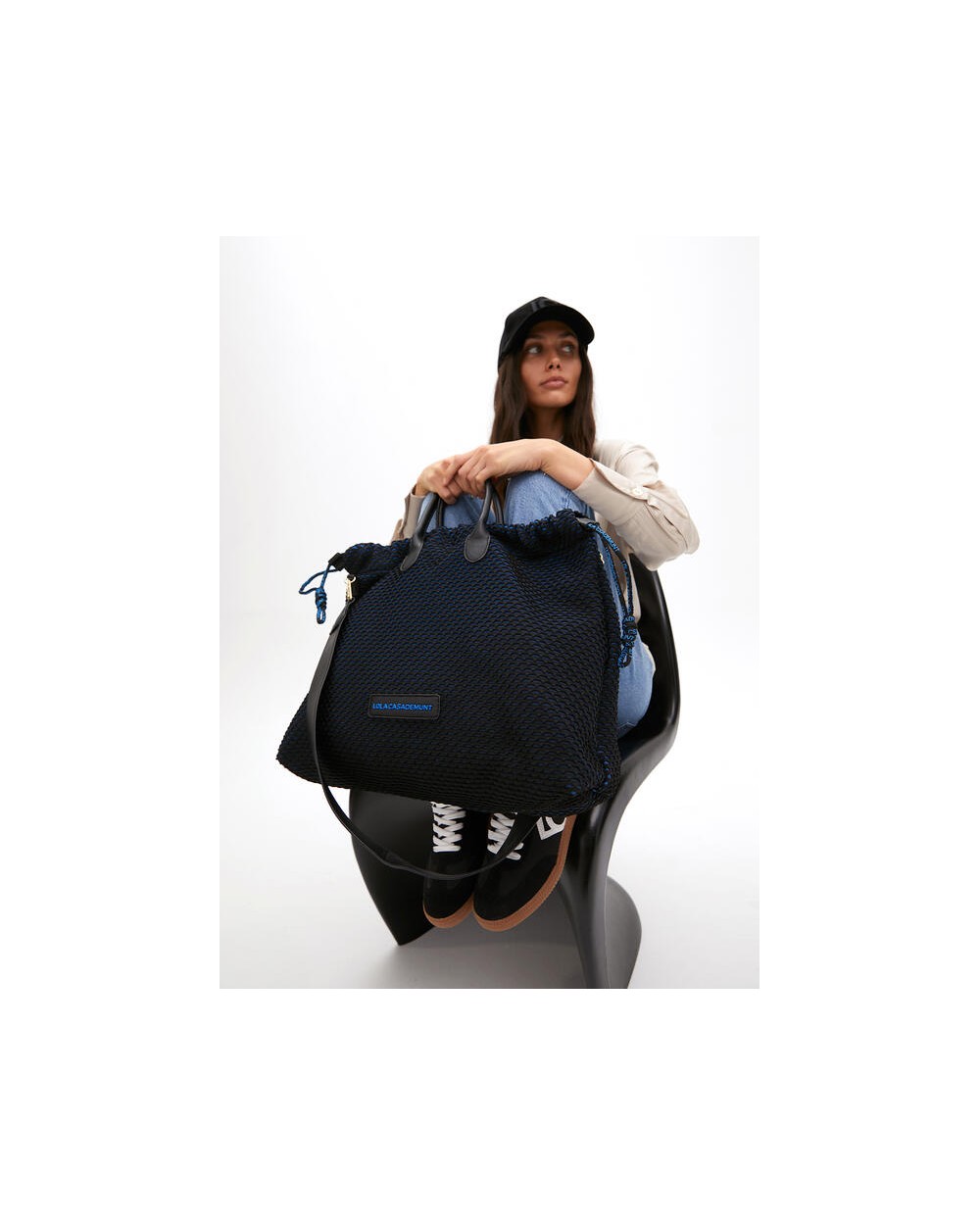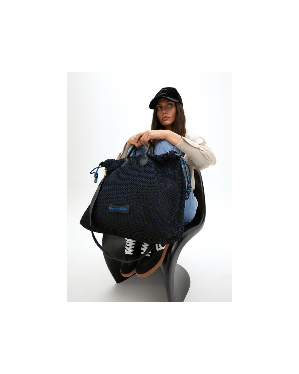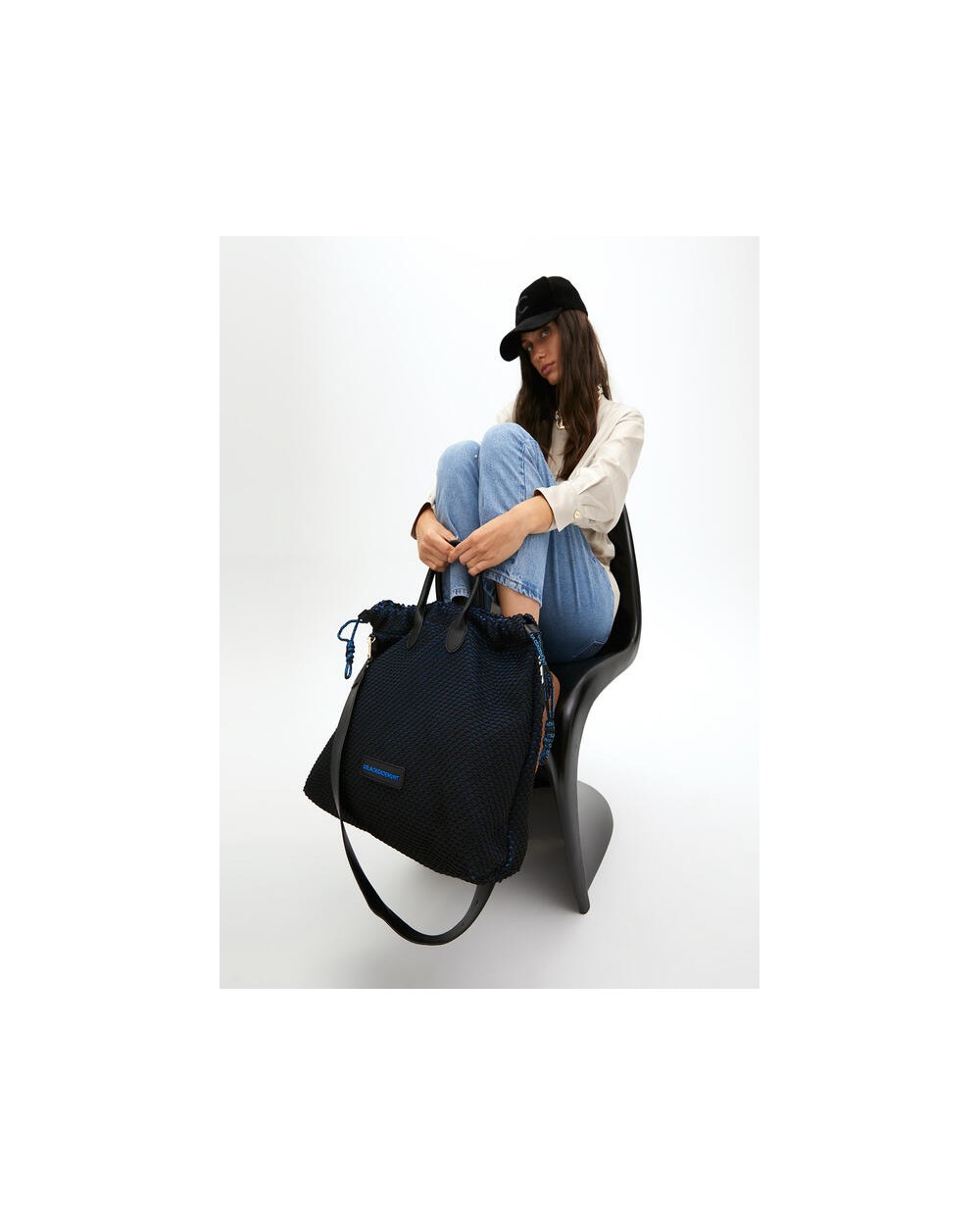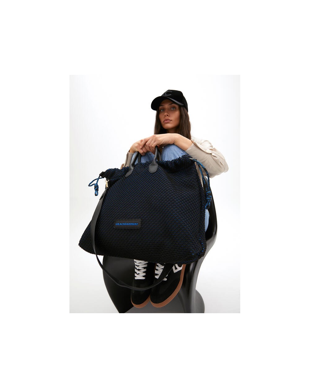 Bolso negro con tejido rejilla interior azul de Lola Casademunt.