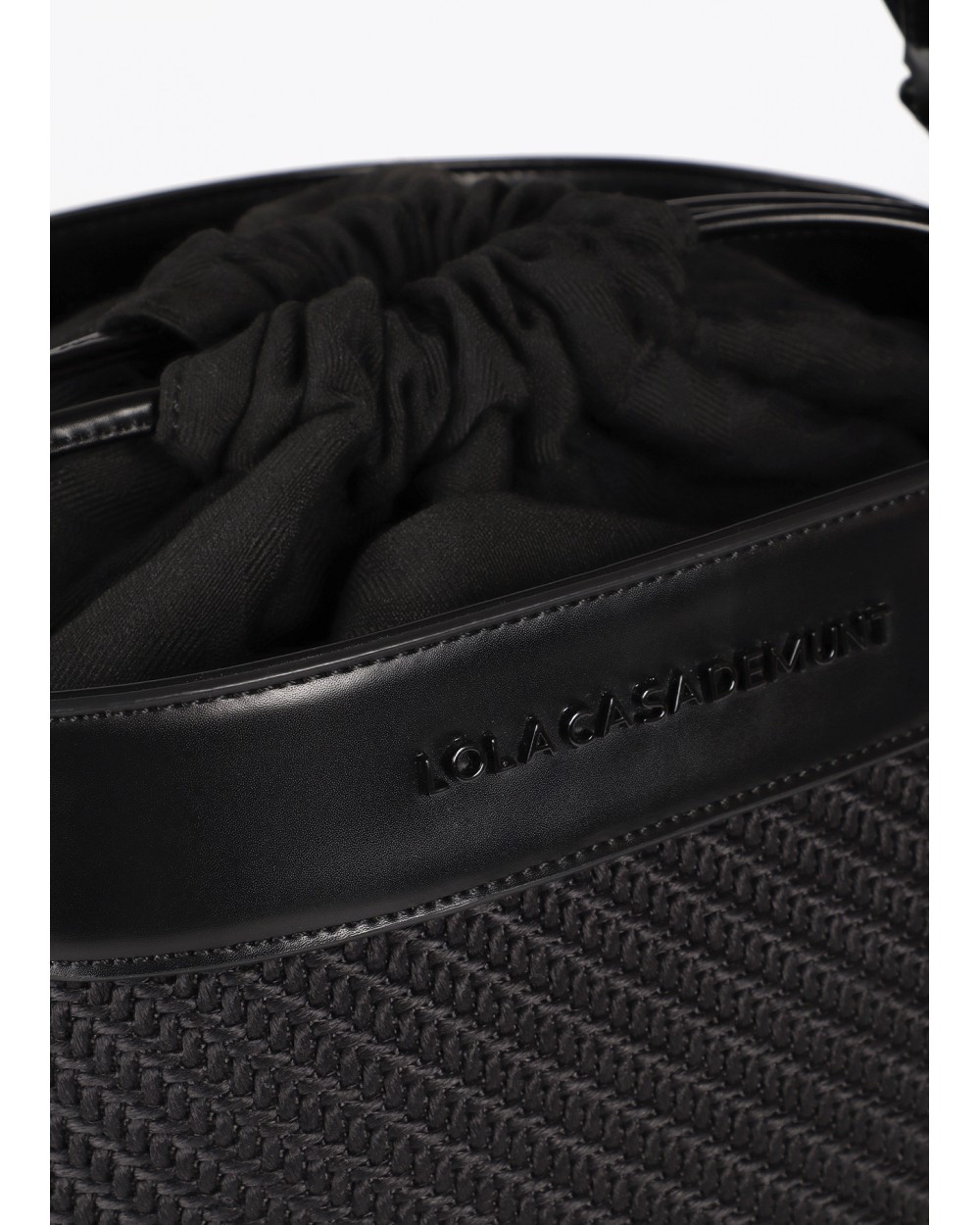 Práctico bolso hobo que combina tejido texturizado con detalles en efecto piel. Cuenta con cierre ajustable y correa de hombro con logotipo grabado. Ideal para llevar todo lo esencial con estilo.