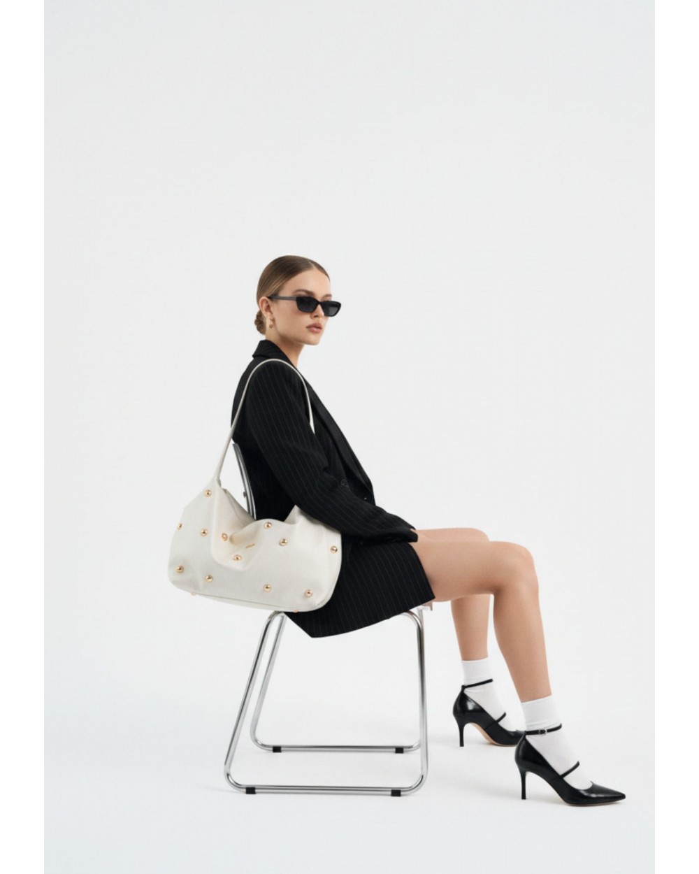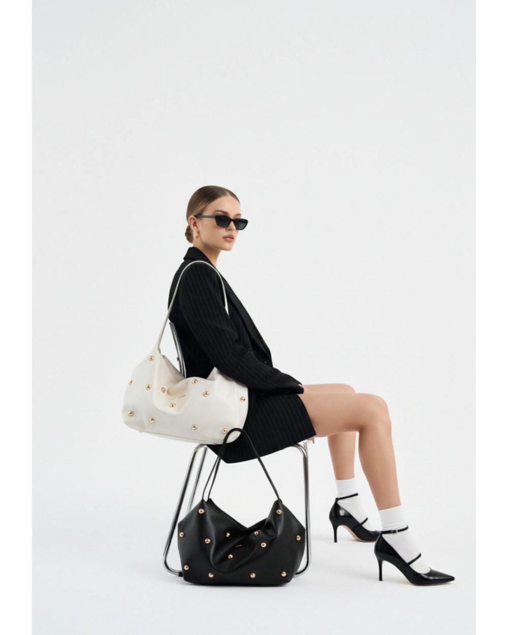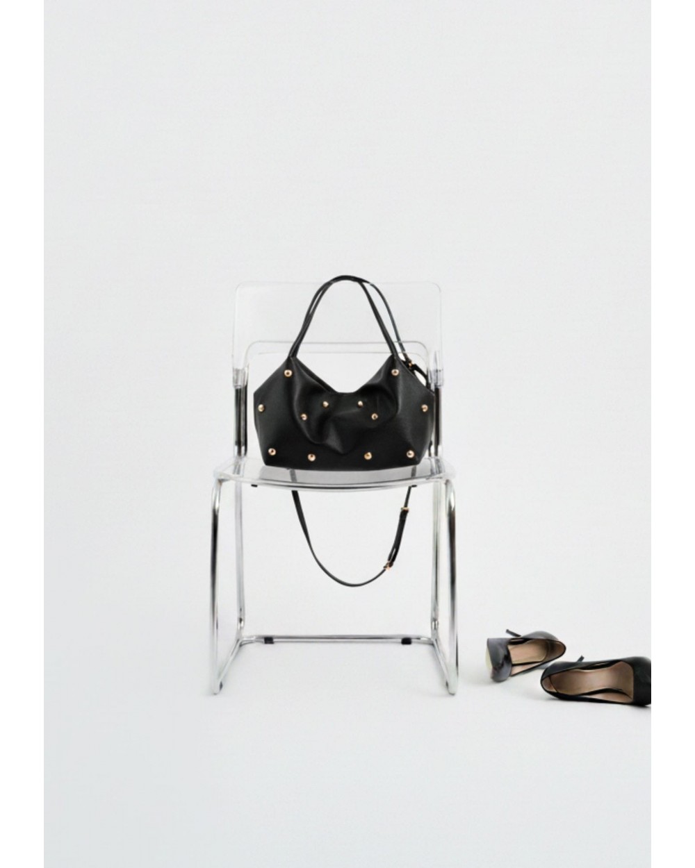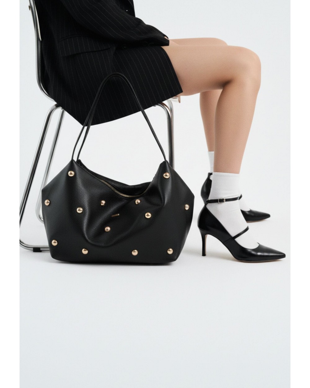 Sus maxi tachuelas doradas aportan un toque llamativo y especial, convirtiéndolo en una pieza protagonista. Cuenta con dos asas superiores para llevarlo cómodamente al hombro o de mano, y una cremallera superior que añade funcionalidad y un punto urbano al diseño. Su interior es súper amplio, ideal para el día a día, viajes cortos o para quienes necesitan llevarlo todo sin renunciar al estilo. Un maxi bolso con carácter, ligero y muy actual, fiel al ADN de Noco.