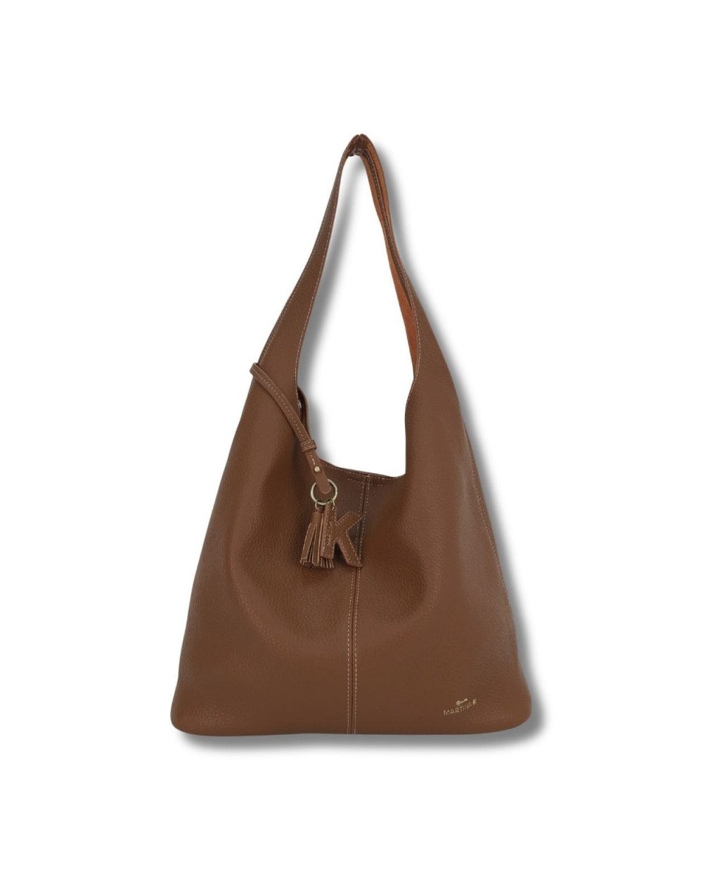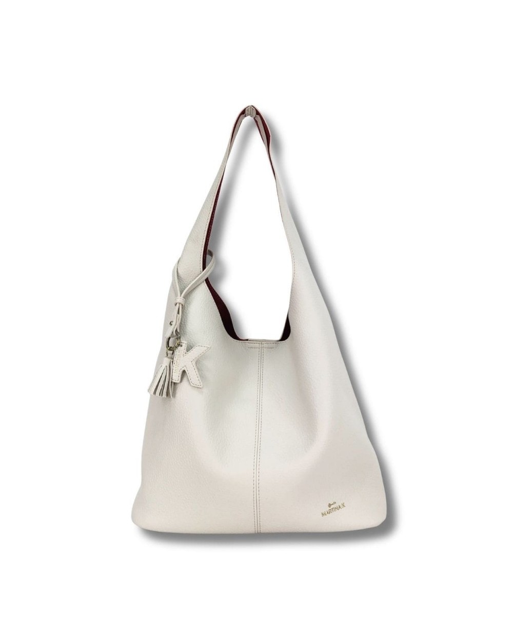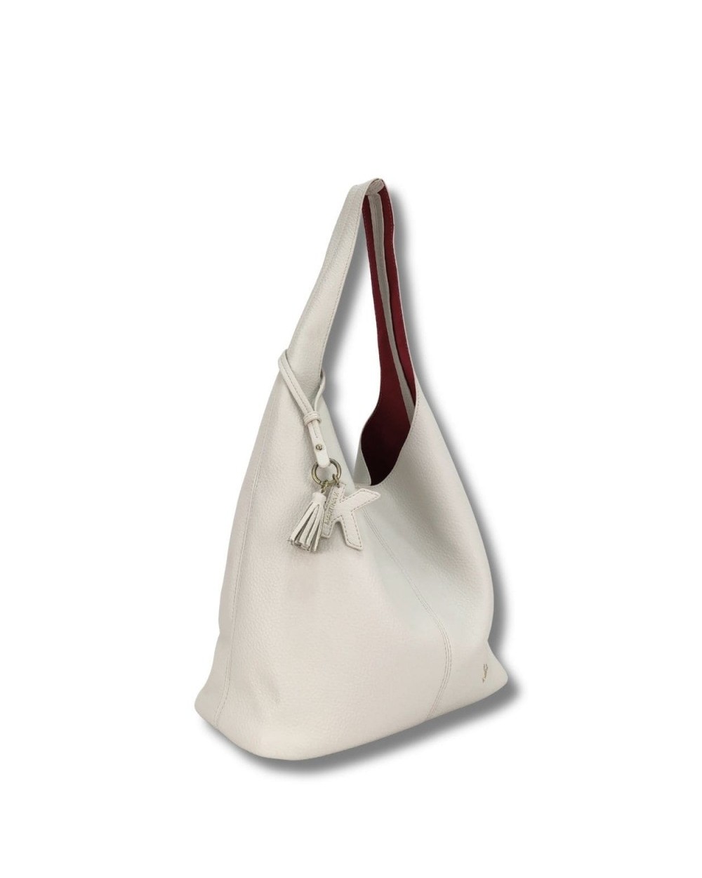 Hobo ligero con detalle de pompón y K colgante con logo. Eco piel vegana. Forro de antelina en contraste. Organizar interior.