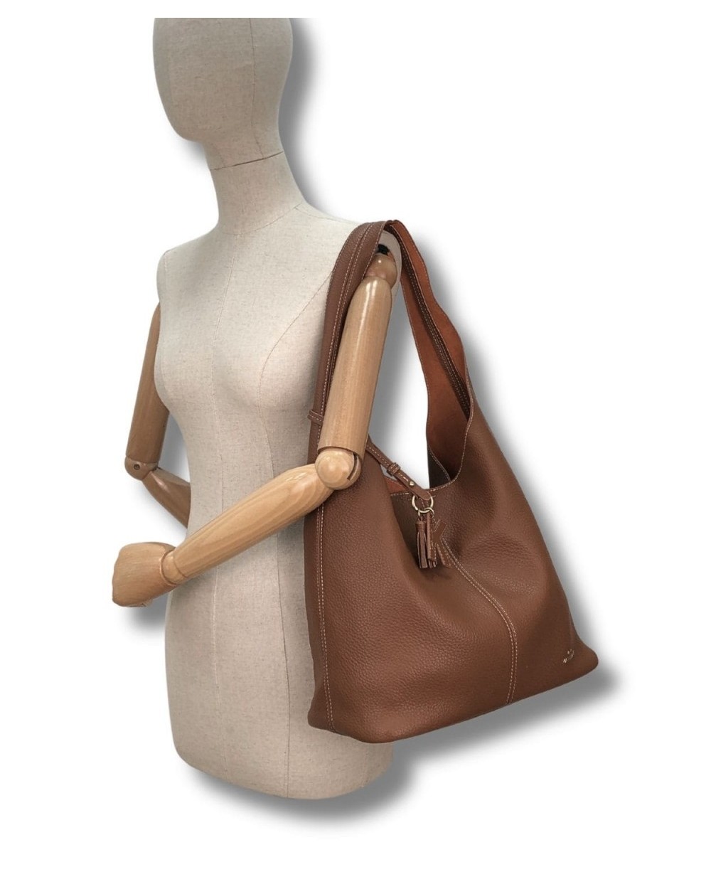 Bolso grande y suave con forma curva y diseño desestructurado. Ideal para diario, ocio o viajes informales.