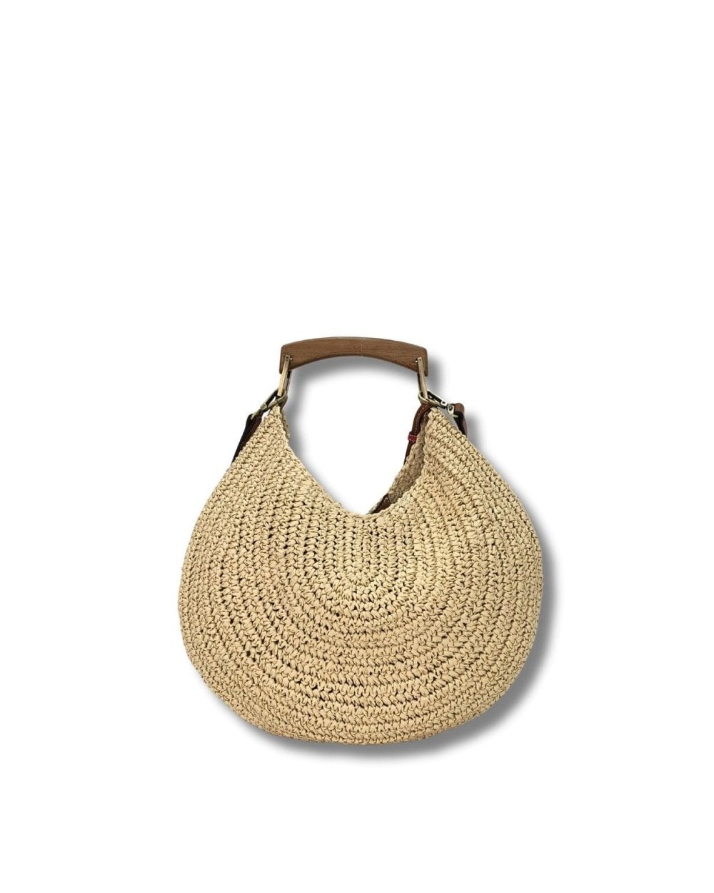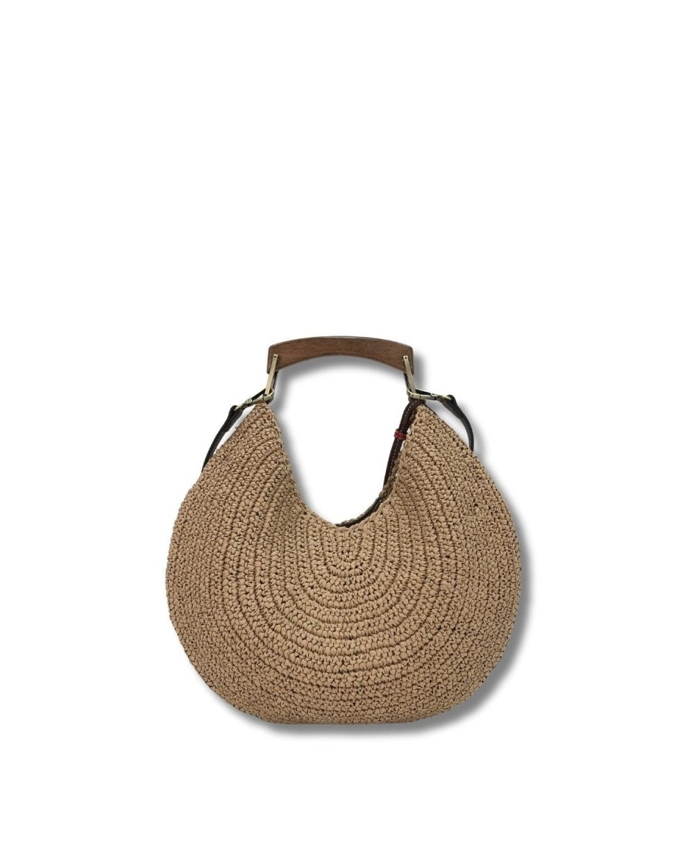 Bolso de paja con asa de madera, diseño único y rústico para un look natural y chic. - Asa de madera ergonómica y cómoda. Diseño trenzado artesanal de paja. Ligero y fácil de llevar. 1 compartimento principal con espacio para lo esencial.