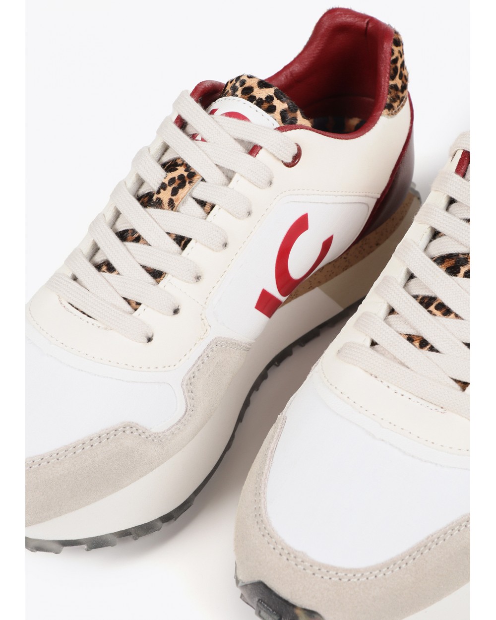 Zapatillas deportivas con suela personalizada y detalles en piel. Con estampado animal print en el talón y logotipo en la parte lateral.