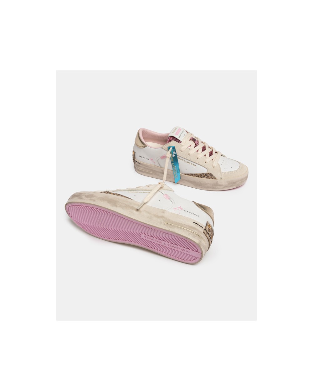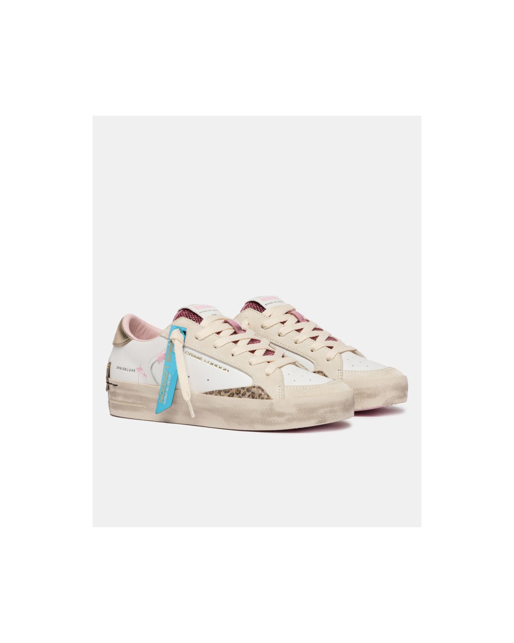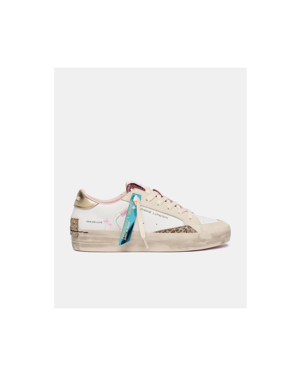 - Parte superior de cuero blanco con detalles de ante estampado de leopardo