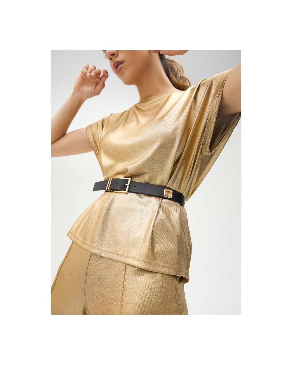 Cinturón en efecto piel. Detalle de piezas metálicas. Cierre con hebilla.