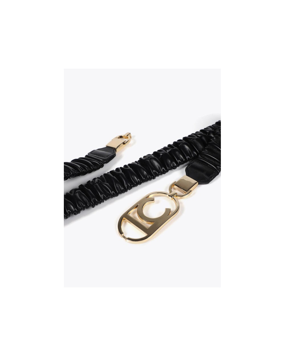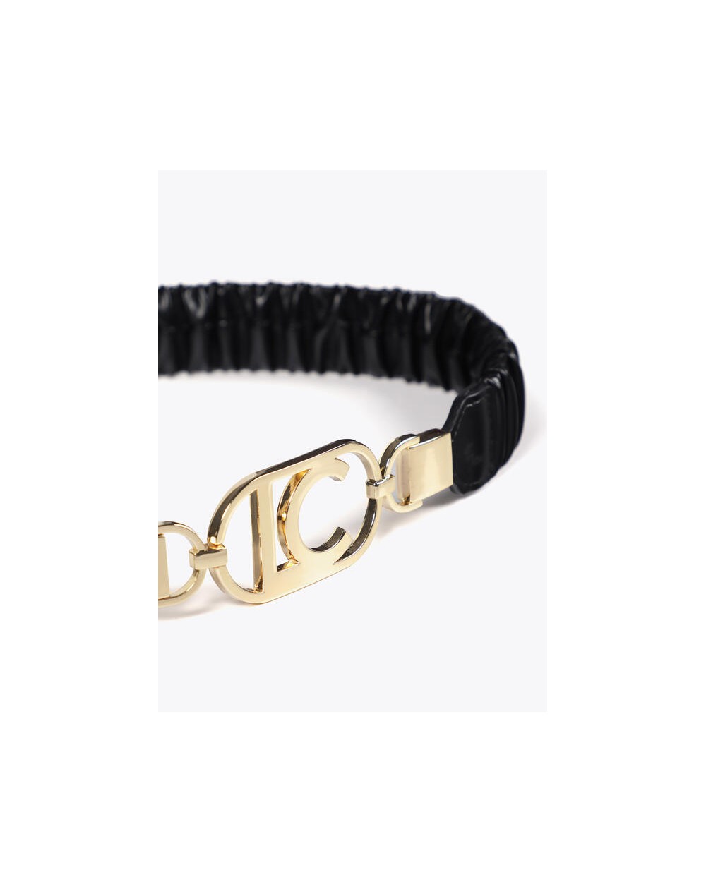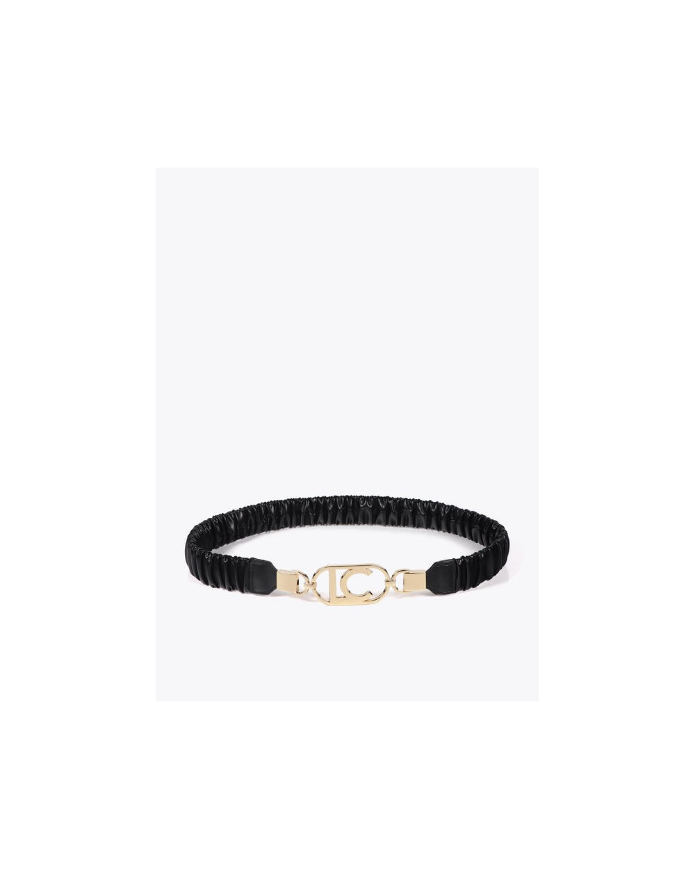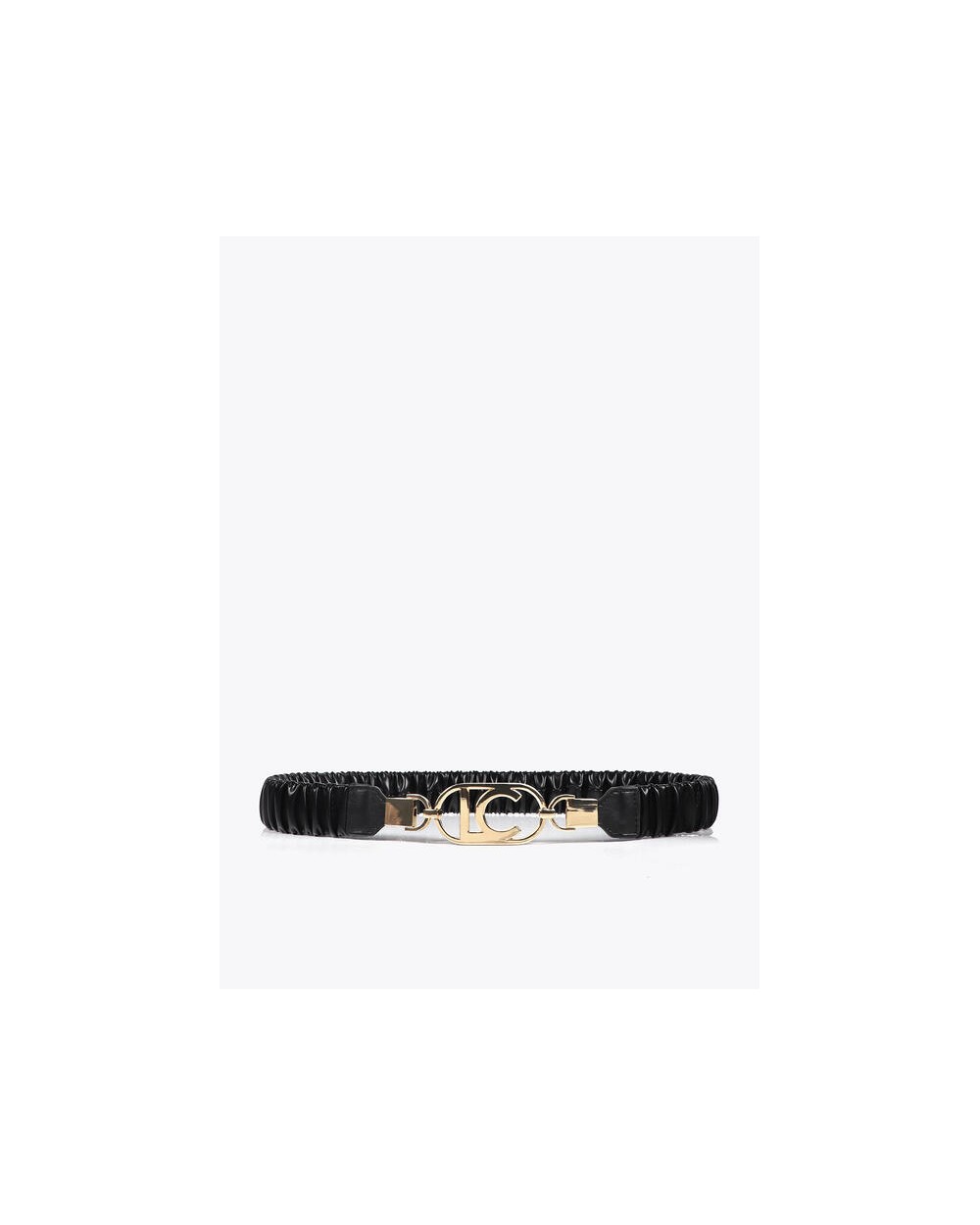 Cinturòn efecto piel elastico logo ovalado NEGRO