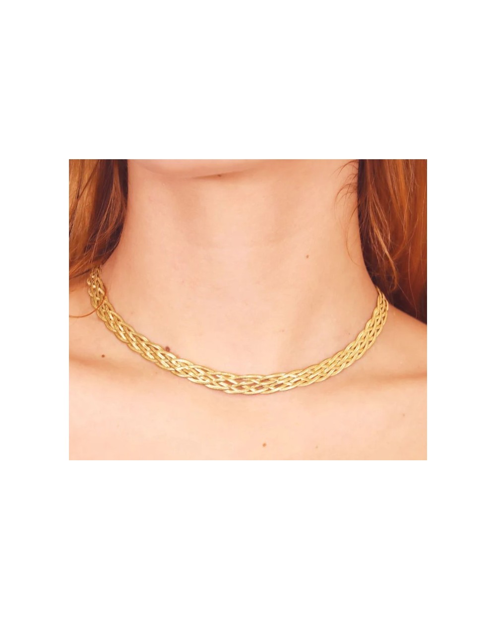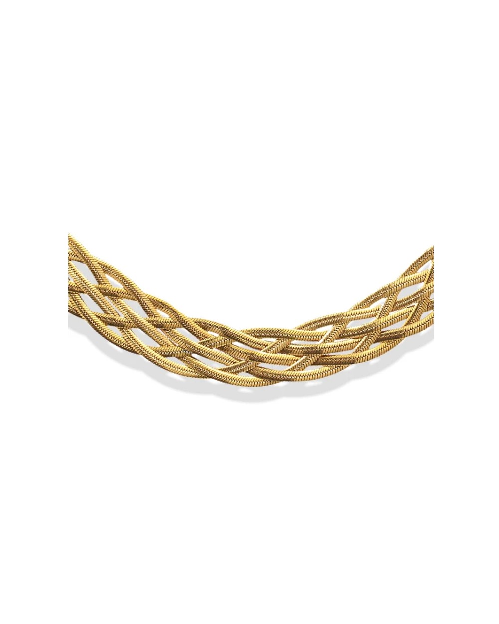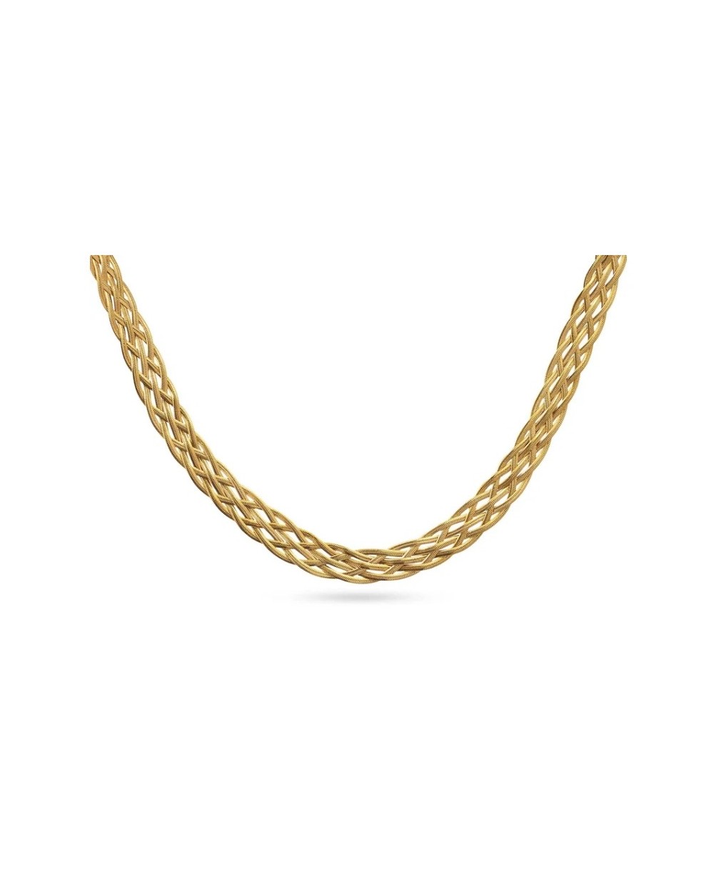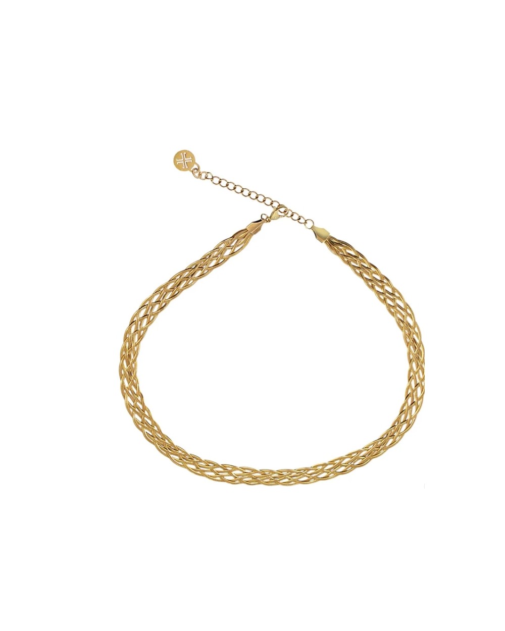 Collar Shore Chain un diseño con 6 cadenas planas trenzadas disponible en dorado y plateado con cadena de extensión y cierre tipo langosta. Libre de alergias y con detalle exclusivo de logo anartxy.