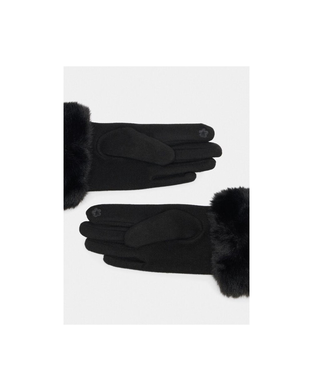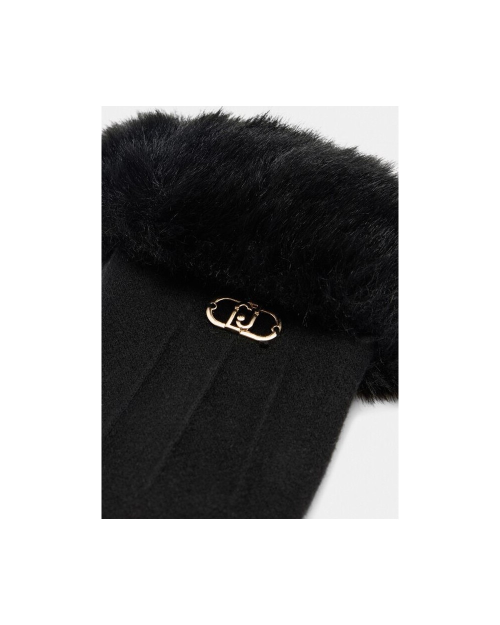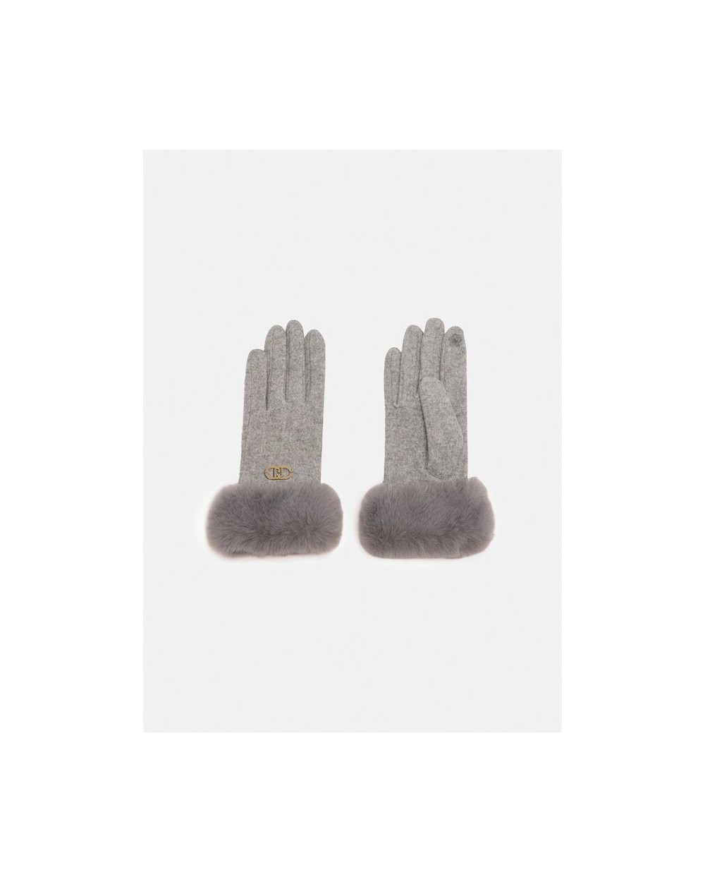 Guantes en negro o gris con pelo sintètico en puños a tono, con logotipo de monograma en metal dorado.