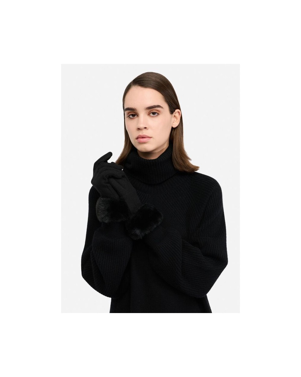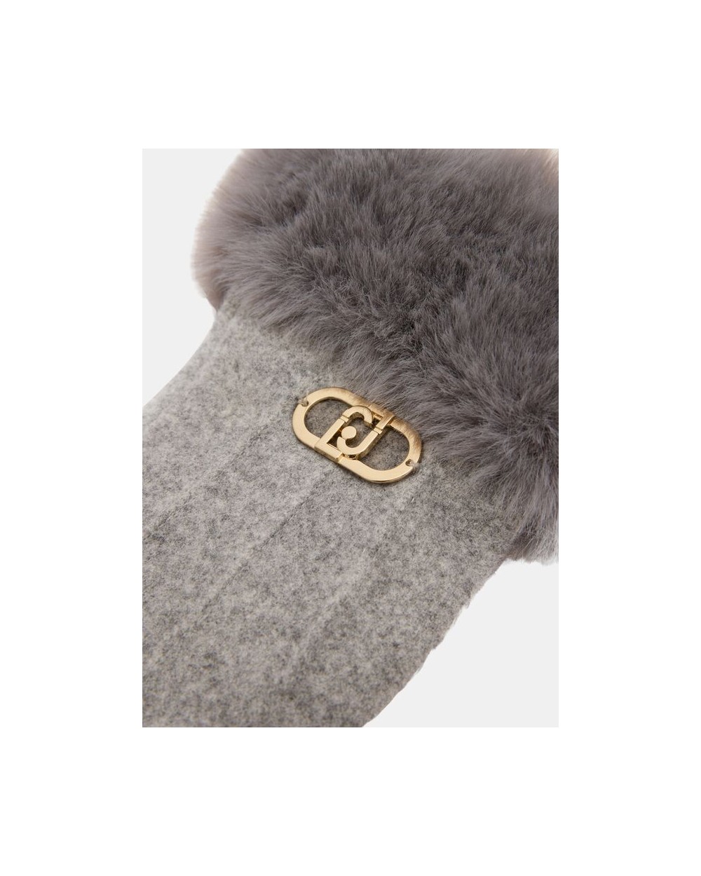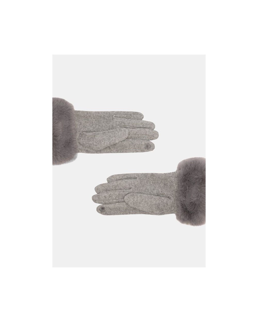 Guantes en negro o gris con pelo sintètico en puños a tono, con logotipo de monograma en metal dorado.