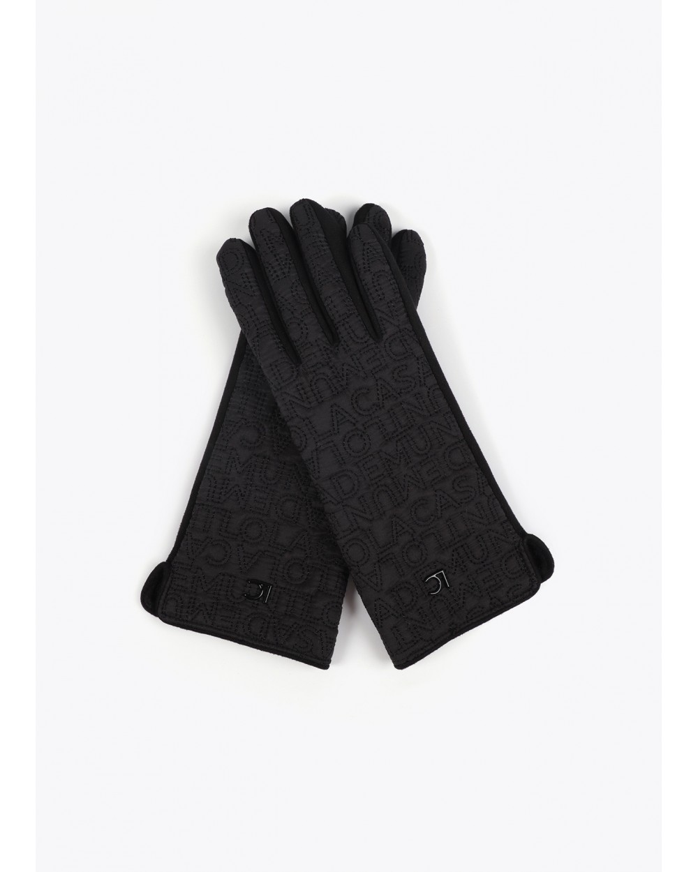 Guantes con logo bordado, confeccionados en tejido suave y cálido. Diseño ajustado con detalle de logo metálico. Ideales para añadir un toque de sofisticación en tu look de invierno.