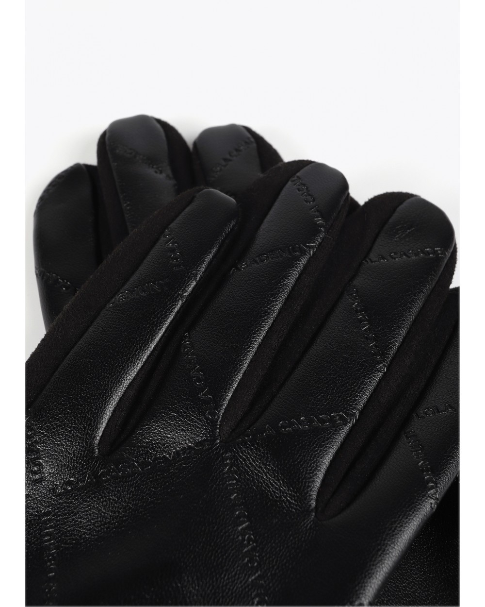 Guantes elegantes en material sintético con diseño cruzado en cuadricula. Presentan un acabado suave al tacto y detalles de logotipo. Incorporan un forro cálido que ofrece confort total.