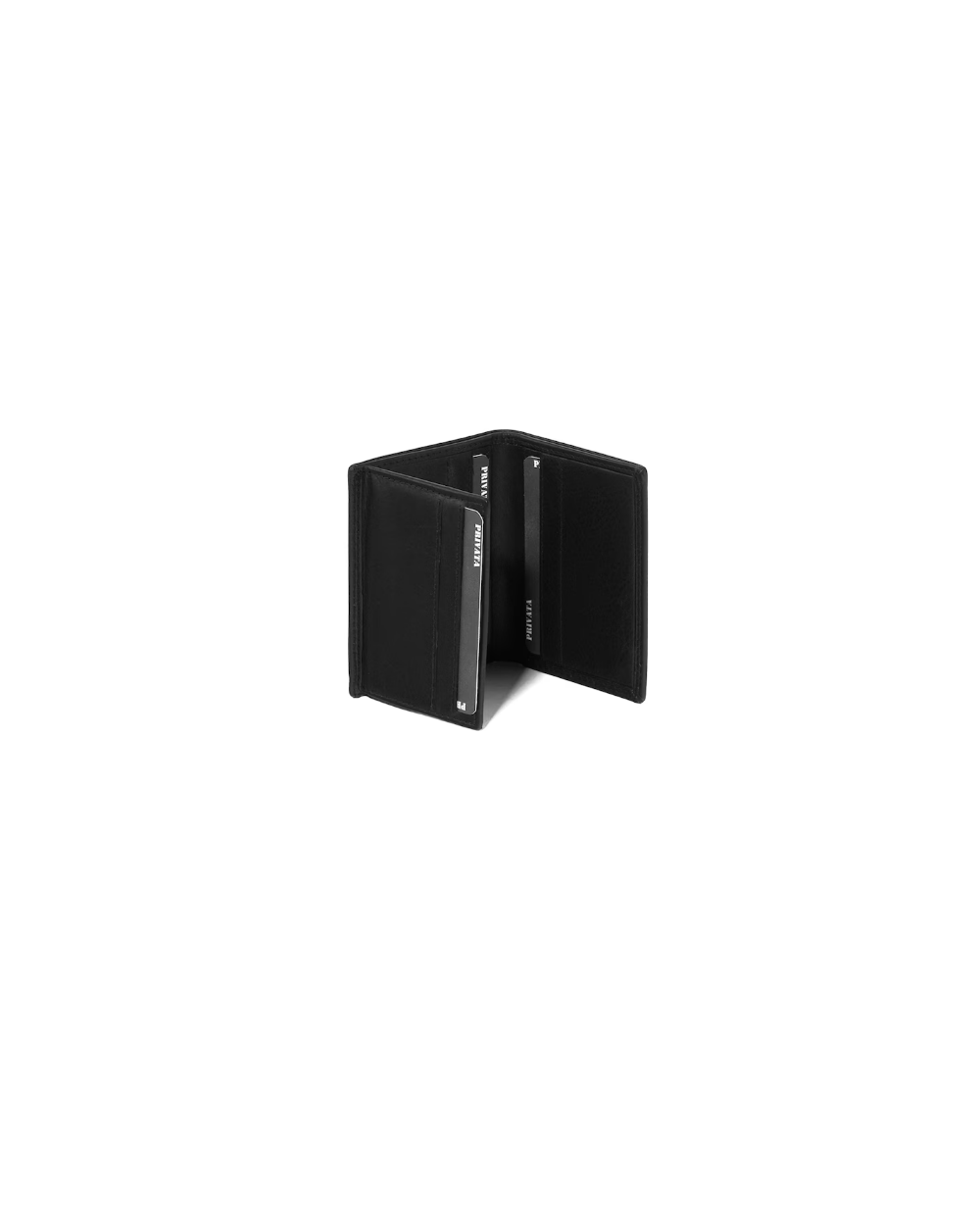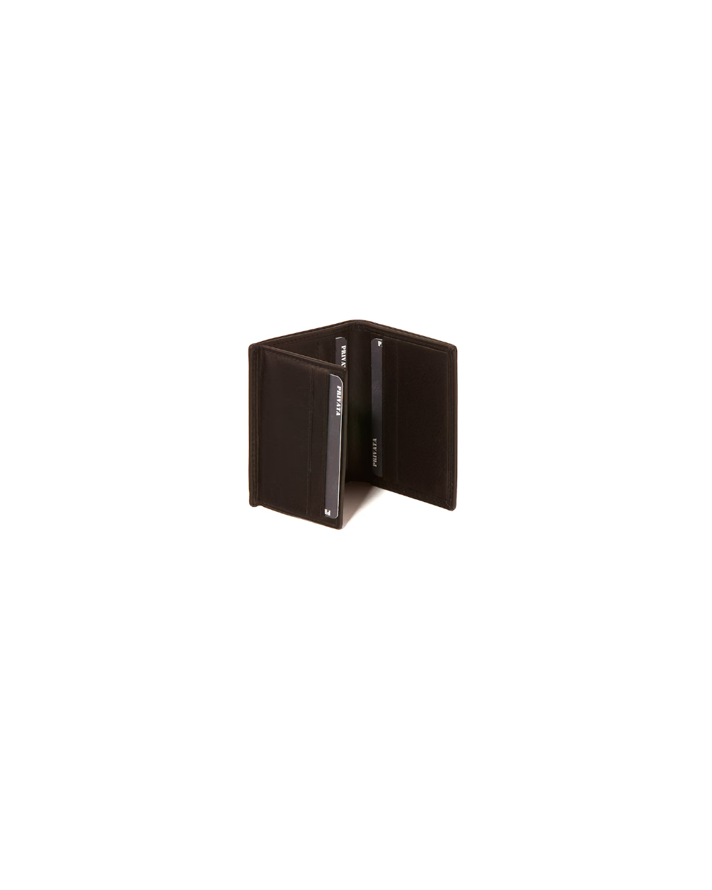 Billetero vertical fabricado en piel vacuno. En el interior dispone de un departamento para billetes, 8 ranuras para tarjetas y una ventana con plástico. Logo de privata en placa metálica incrustada. Colección Basic2.