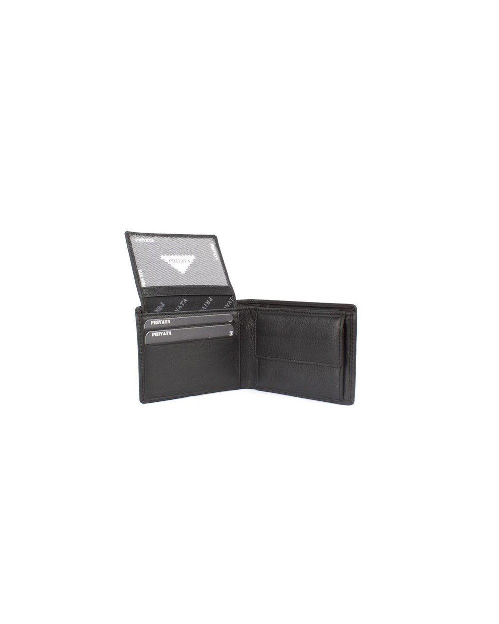Billetero americano (horizontal) fabricado en piel vacuno de primera calidad. En el interior dispone de dos departamentos para billetes, 6 ranuras para tarjetas, una ventana con plástico y un portamonedas que se cierra con un click. Logo de privata en placa metálica incrustada. Colección Nappa top.