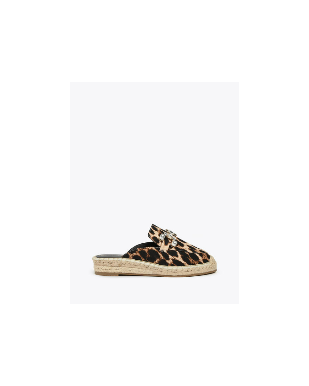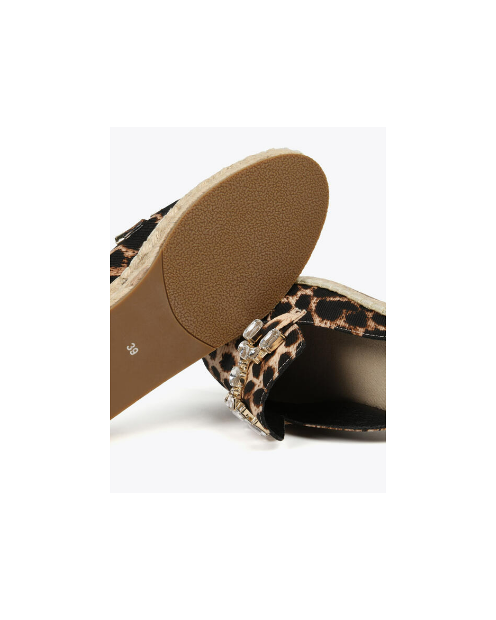 Alpargata plana en estampado leopardo y detalle de hebilla con cristales