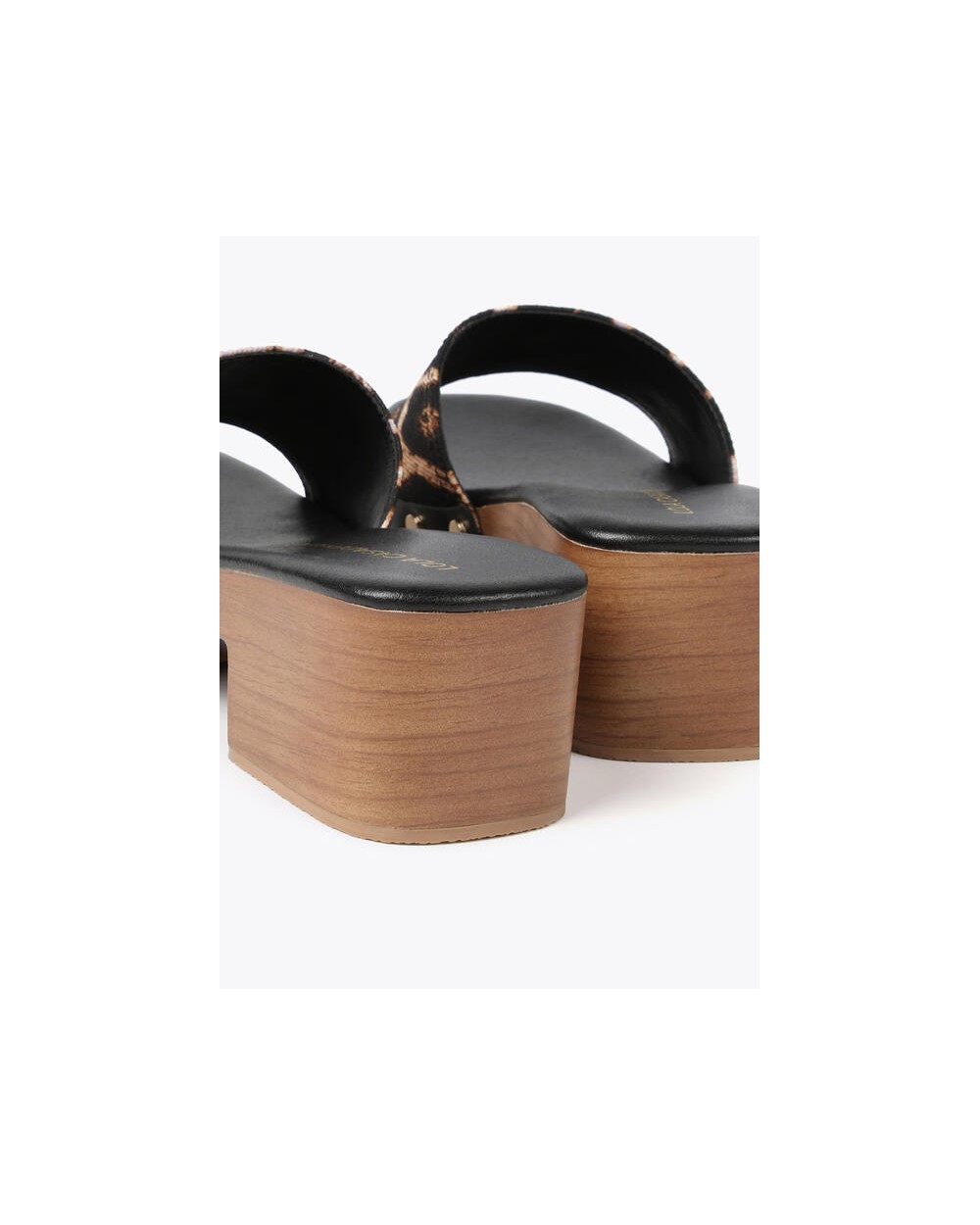 Zueco con plataforma en efecto madera y tejido leopardo de lola casademunt.
