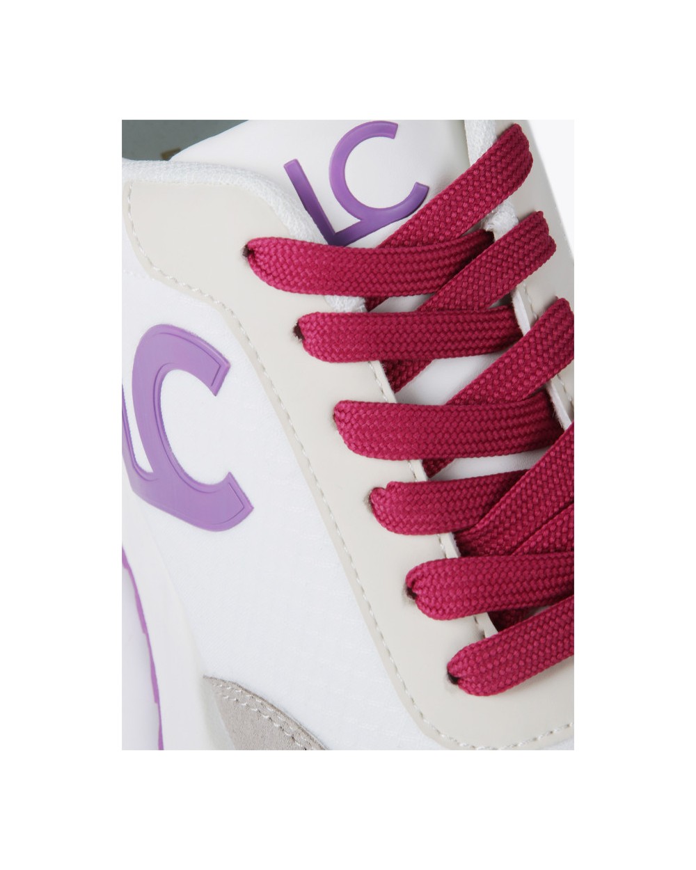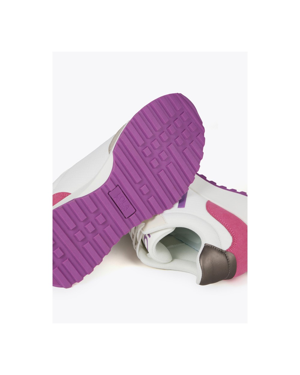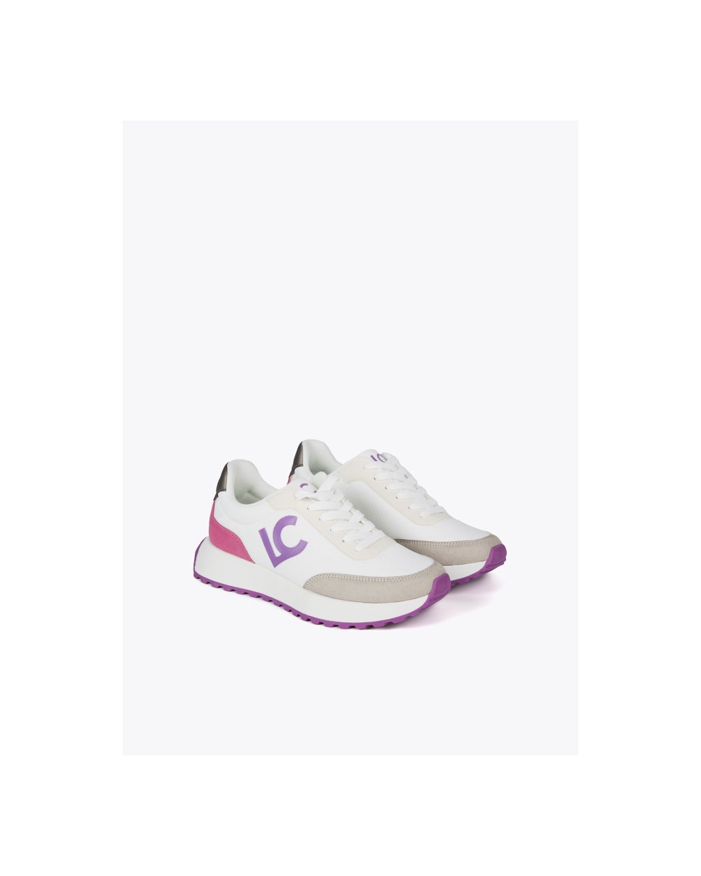 Zapatilla deportiva en formato bamba con tonos lilas y rosas. Suela de plataforma dentada de 4cm de altura. Detalle de logo en frontal y lateral con franjas a contraste.