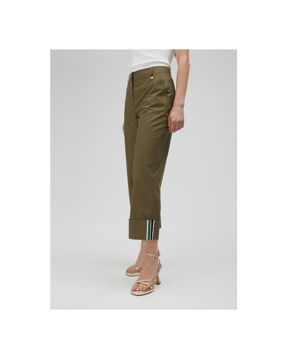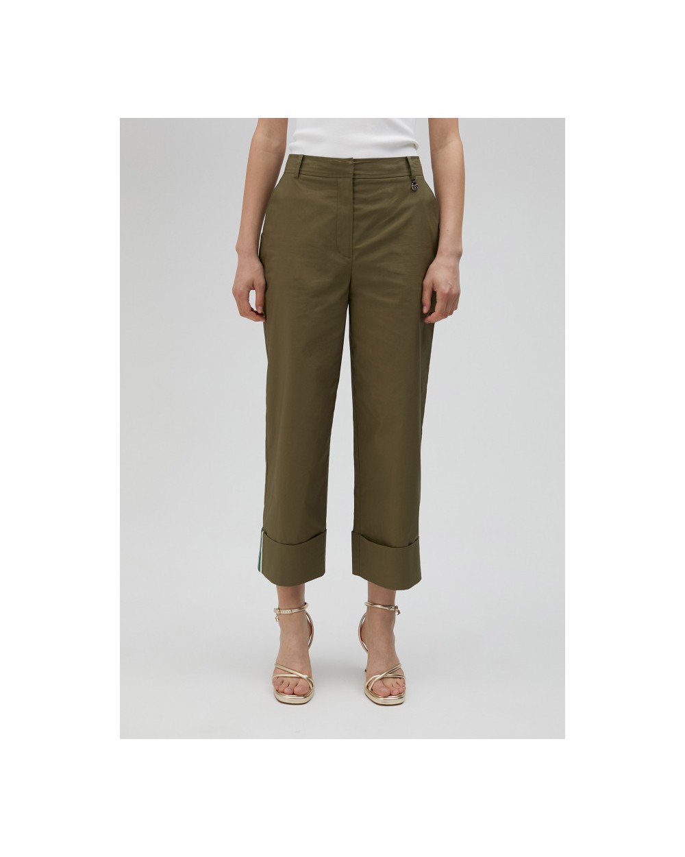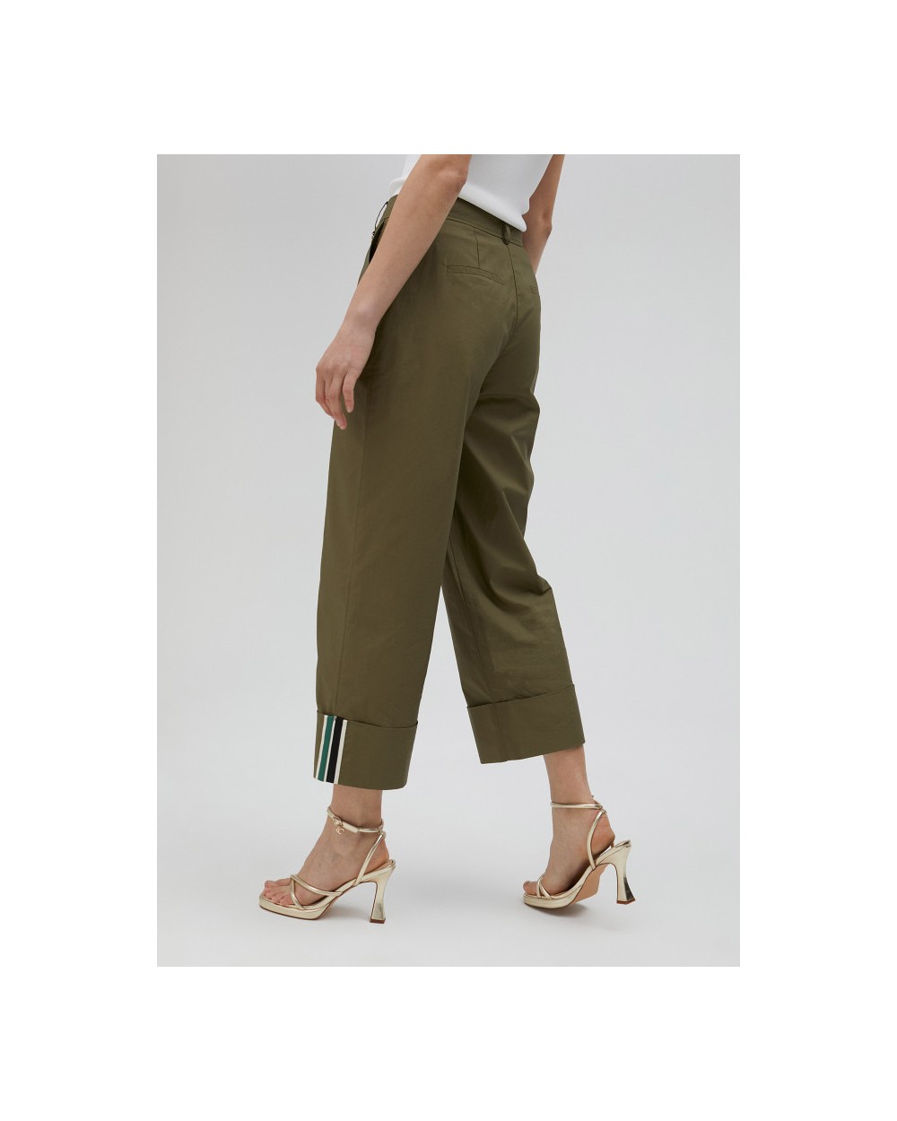 Pantalón popel con vuelta en el bajo y bolsillos laterales. Detalle color en lateral.