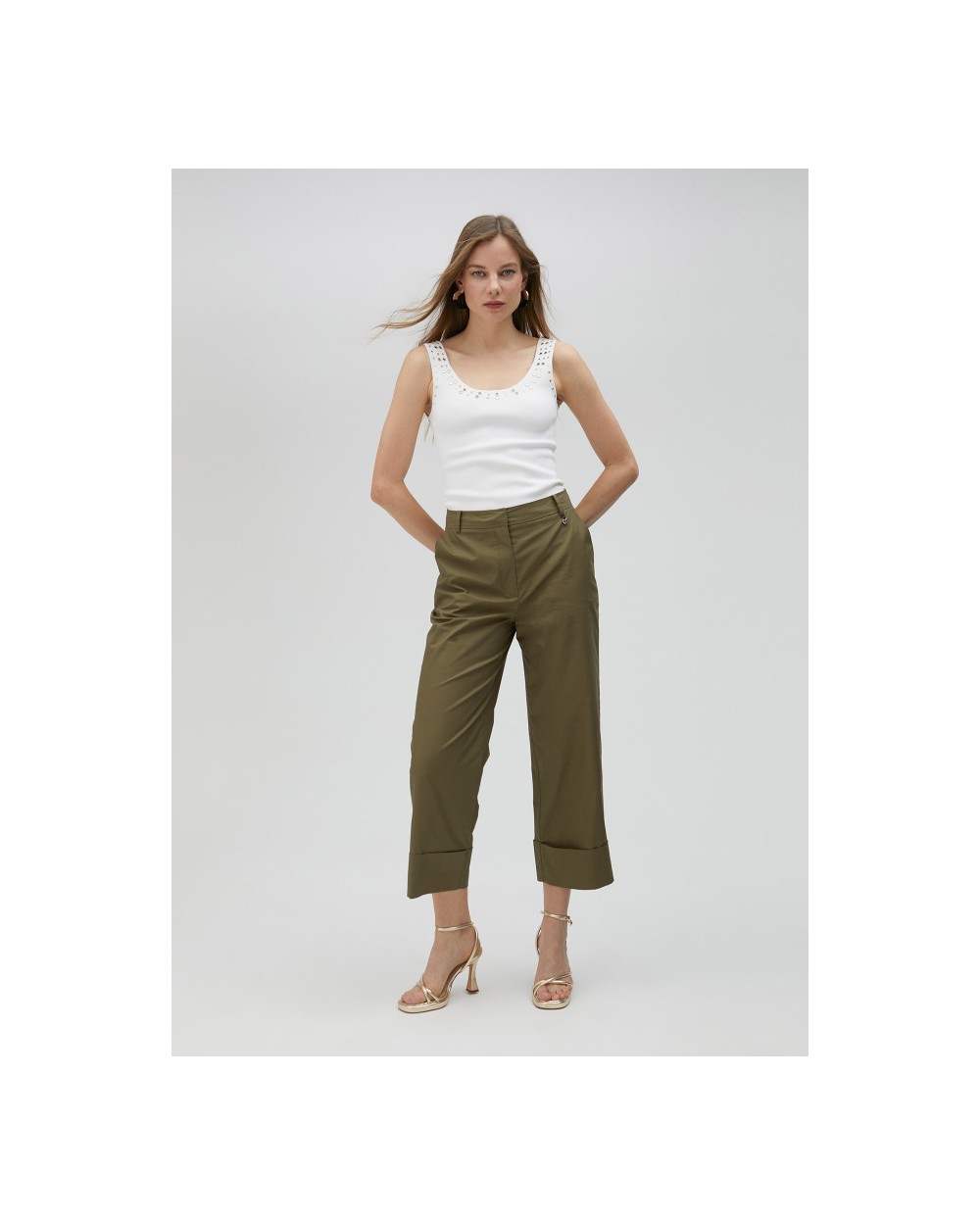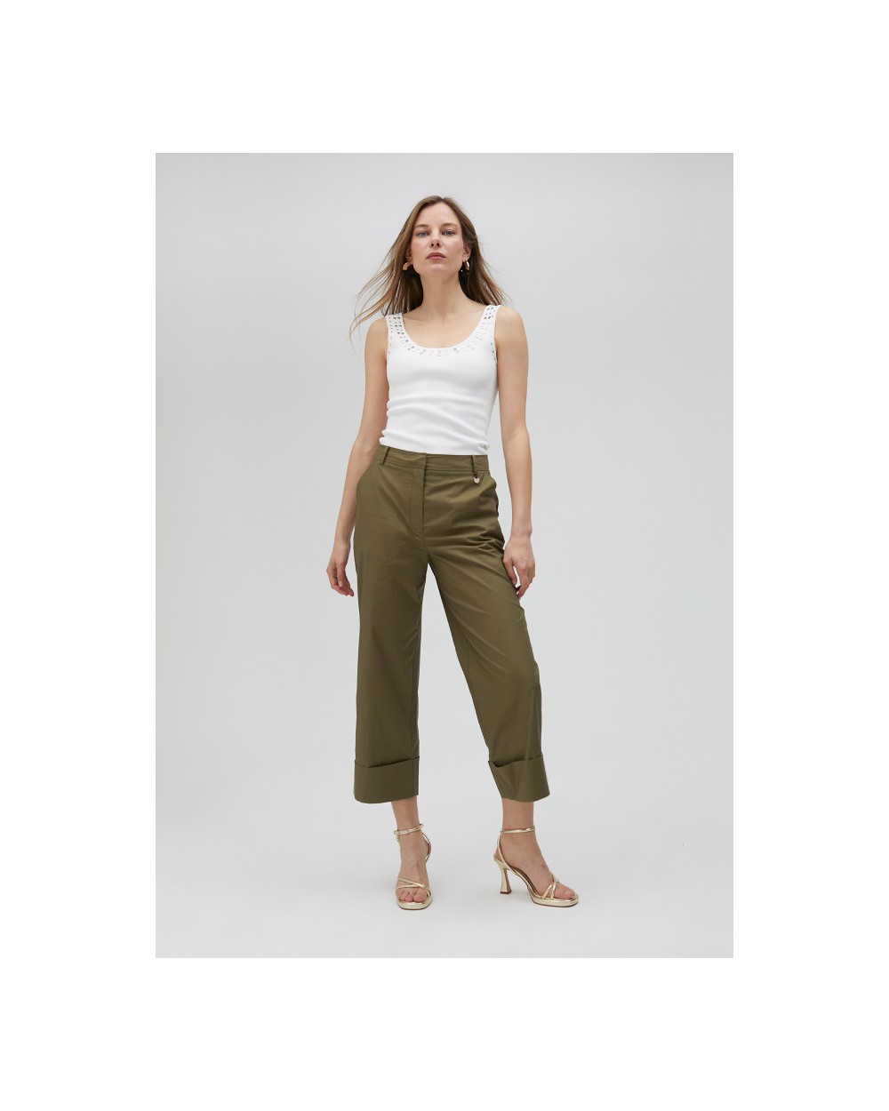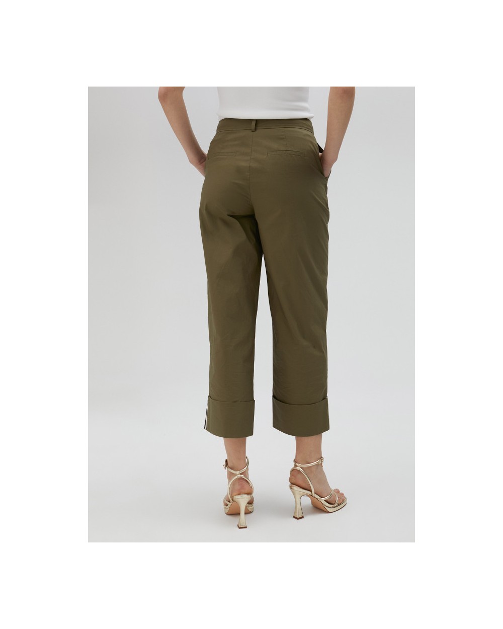 Pantalón popel con vuelta en el bajo y bolsillos laterales. Detalle color en lateral.