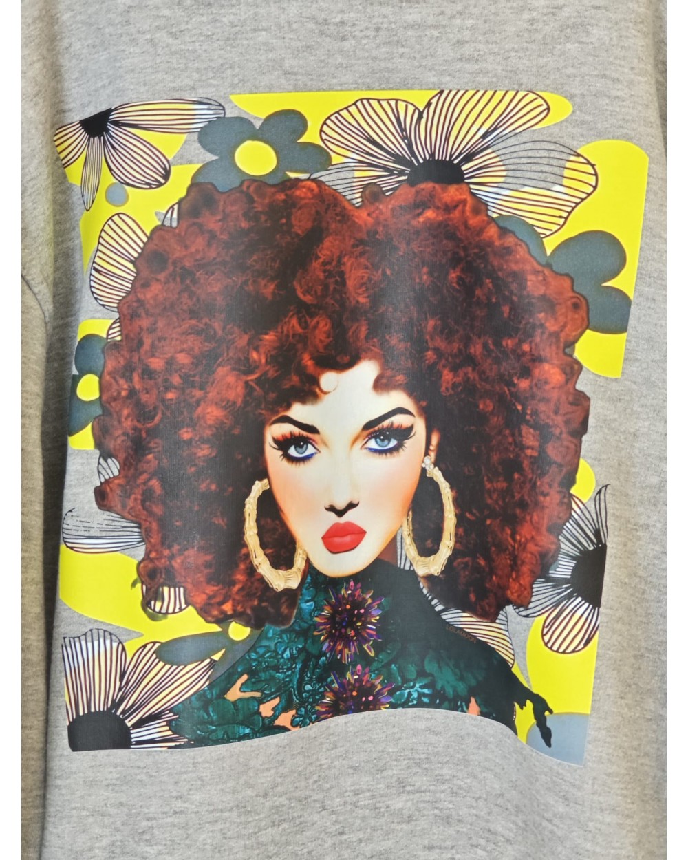 Sudadera de mujer sin capucha, en color Gris con dibujo de mujer en la portada.