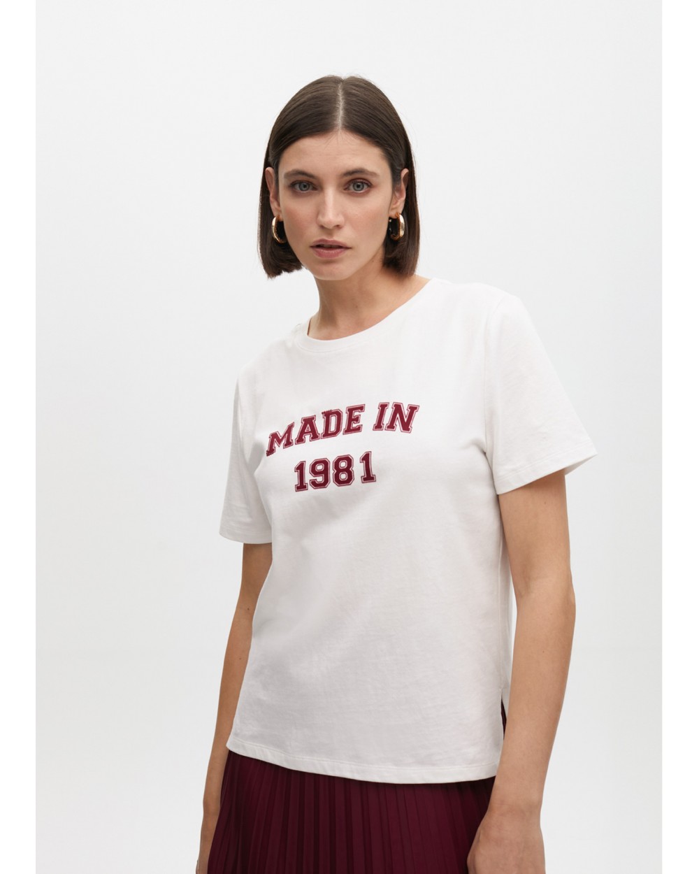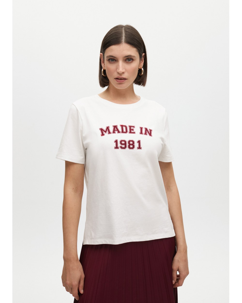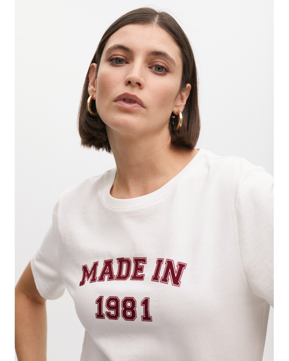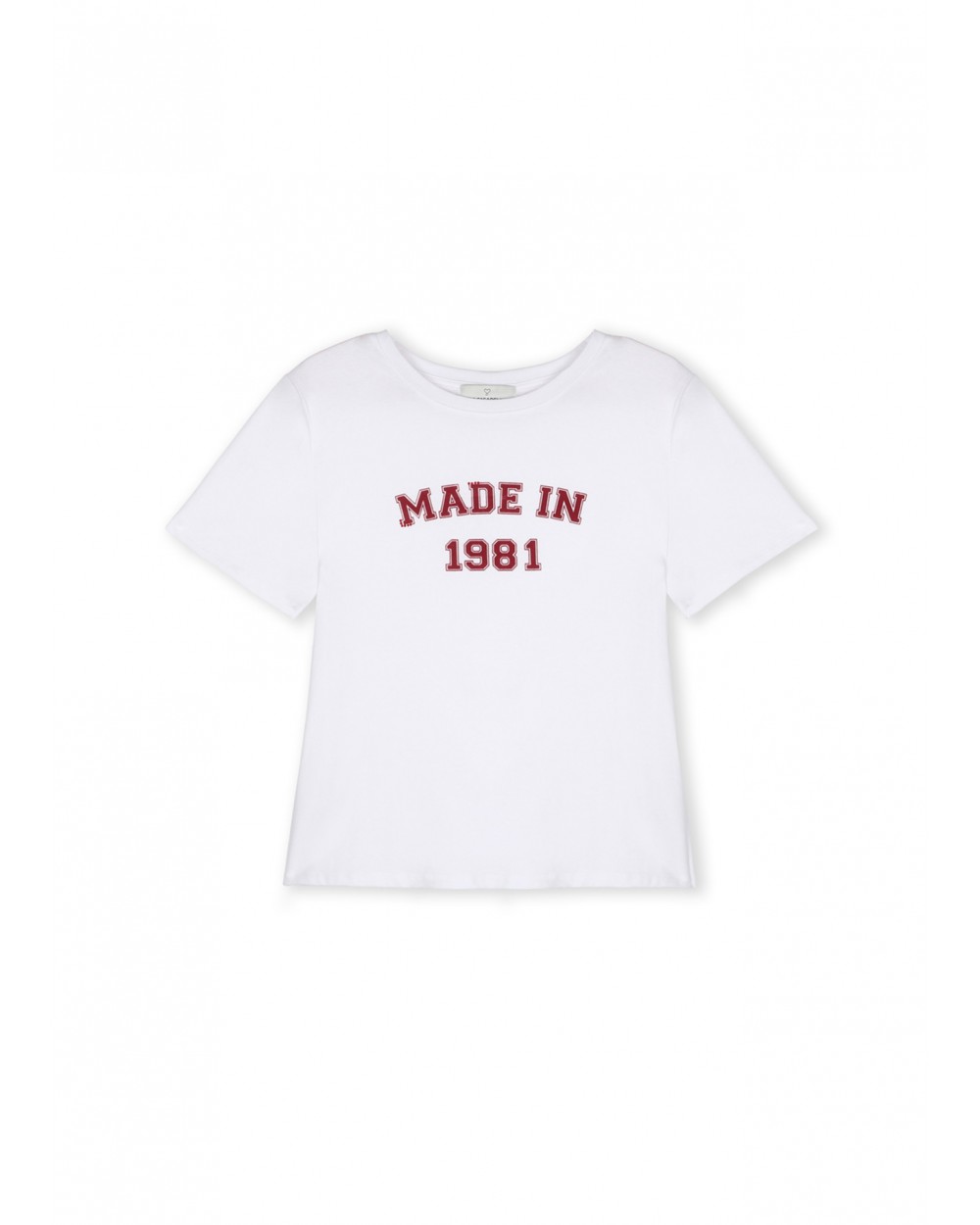 Camiseta de manga corta en algodón con estampado 'Made in 1981'. Diseño cómodo y versátil, ideal para el día a día. Cuello redondo y ajuste relajado.