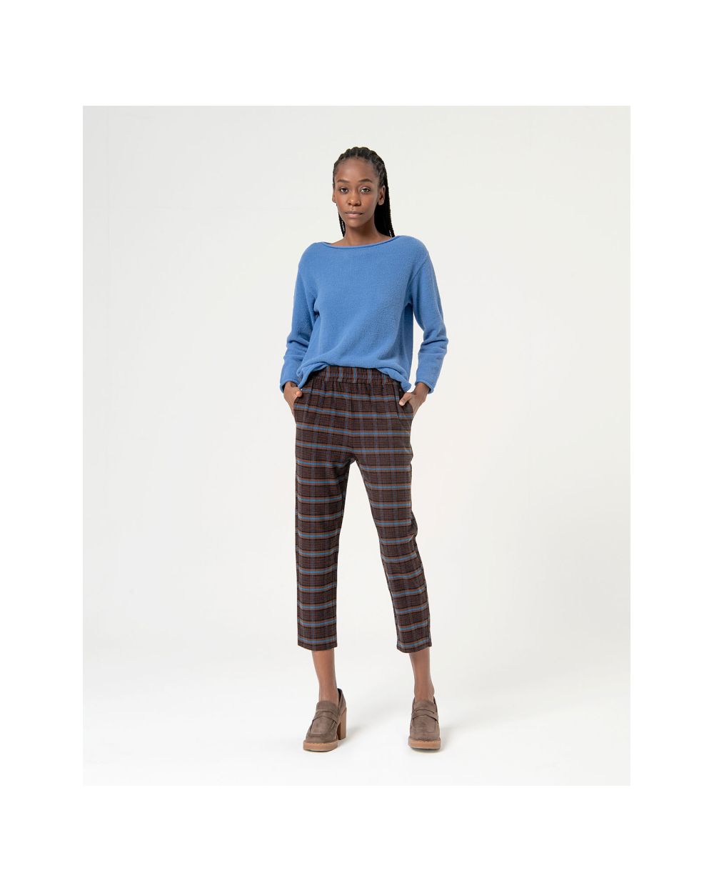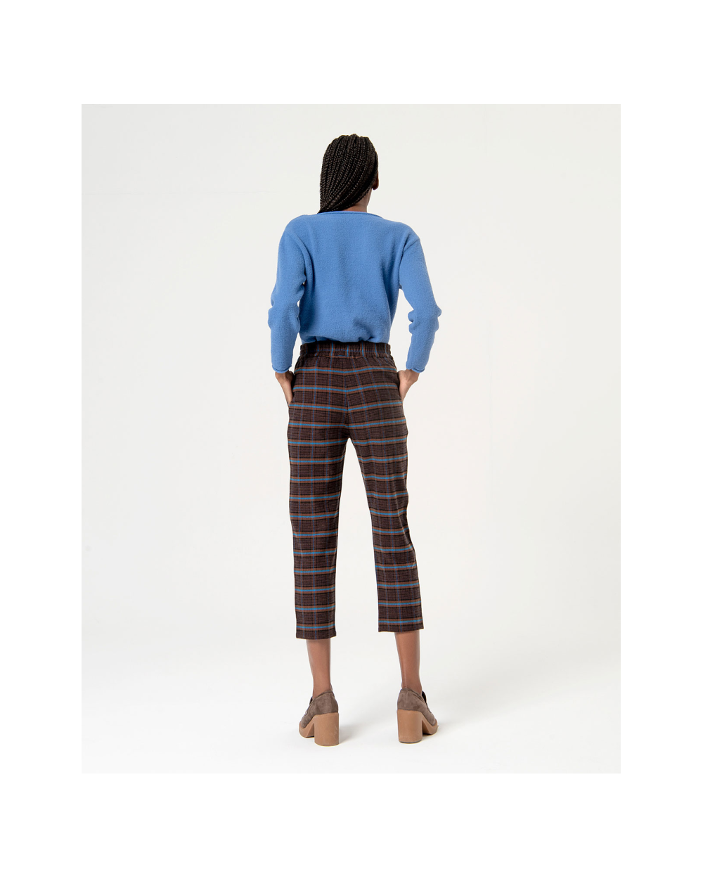 Pantalón jogger cropped con cintura fruncida elástica. Estampado y sin cierres.