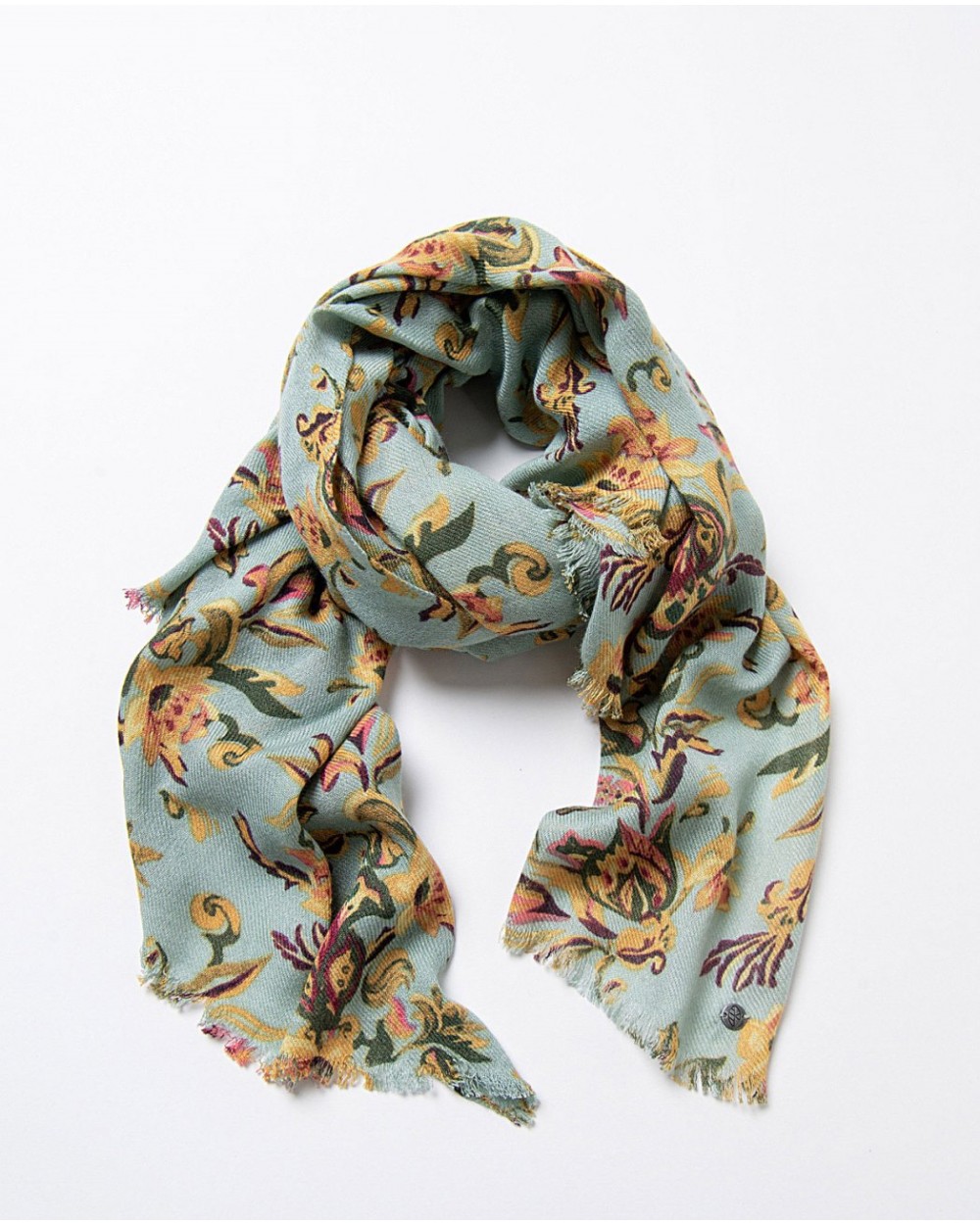 Pañuelo rectangular estampado flores Azul de Surkana.