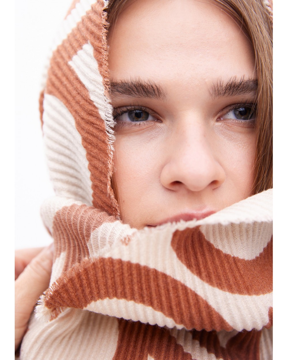 Foular plisado de diseño bicolor con patrón geométrico. Confeccionado en tejido ligero, suave al tacto. Perfecto para añadir un toque sofisticado a cualquier conjunto.