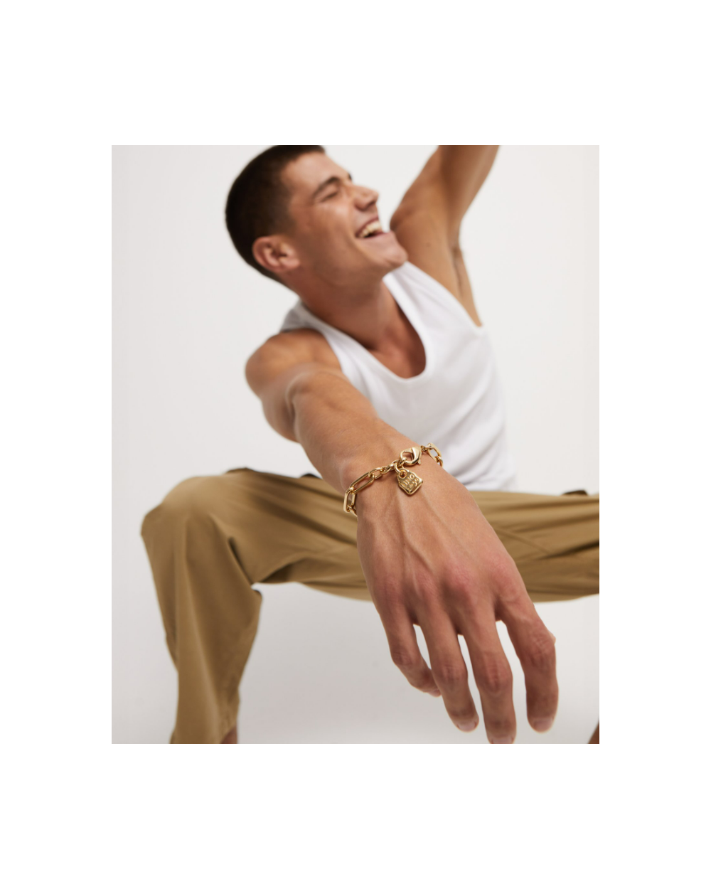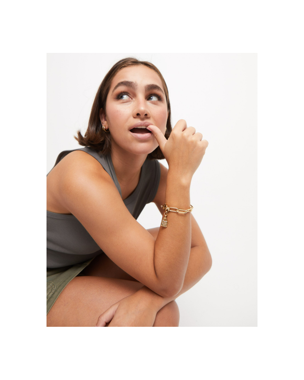 Pulsera con eslabones bañada en oro 18k. Elaborado en España, en un proceso 100% artesanal. Ahora es el momento de confiar en tu instinto y de apostar por aquellas joyas que siempre tuviste en mente y que nunca te atreviste a llevar. Apuesta por los eslabones y si te atreves a ir más allá. Descubre la colección ser valiente.