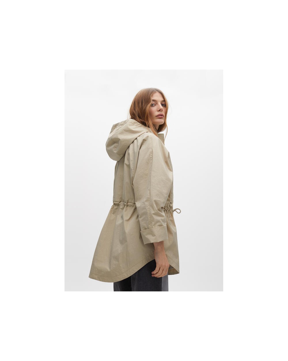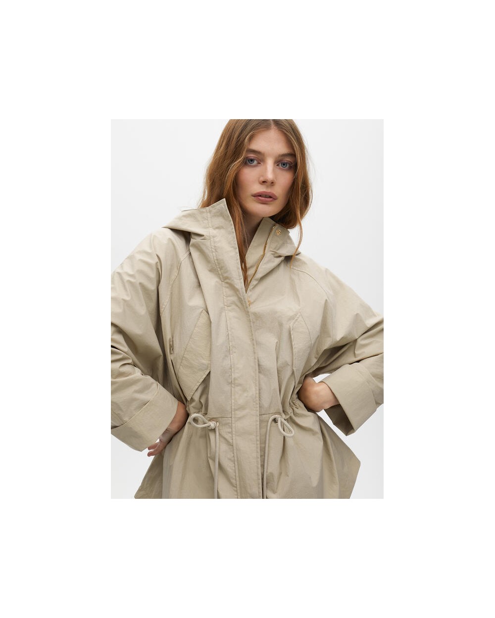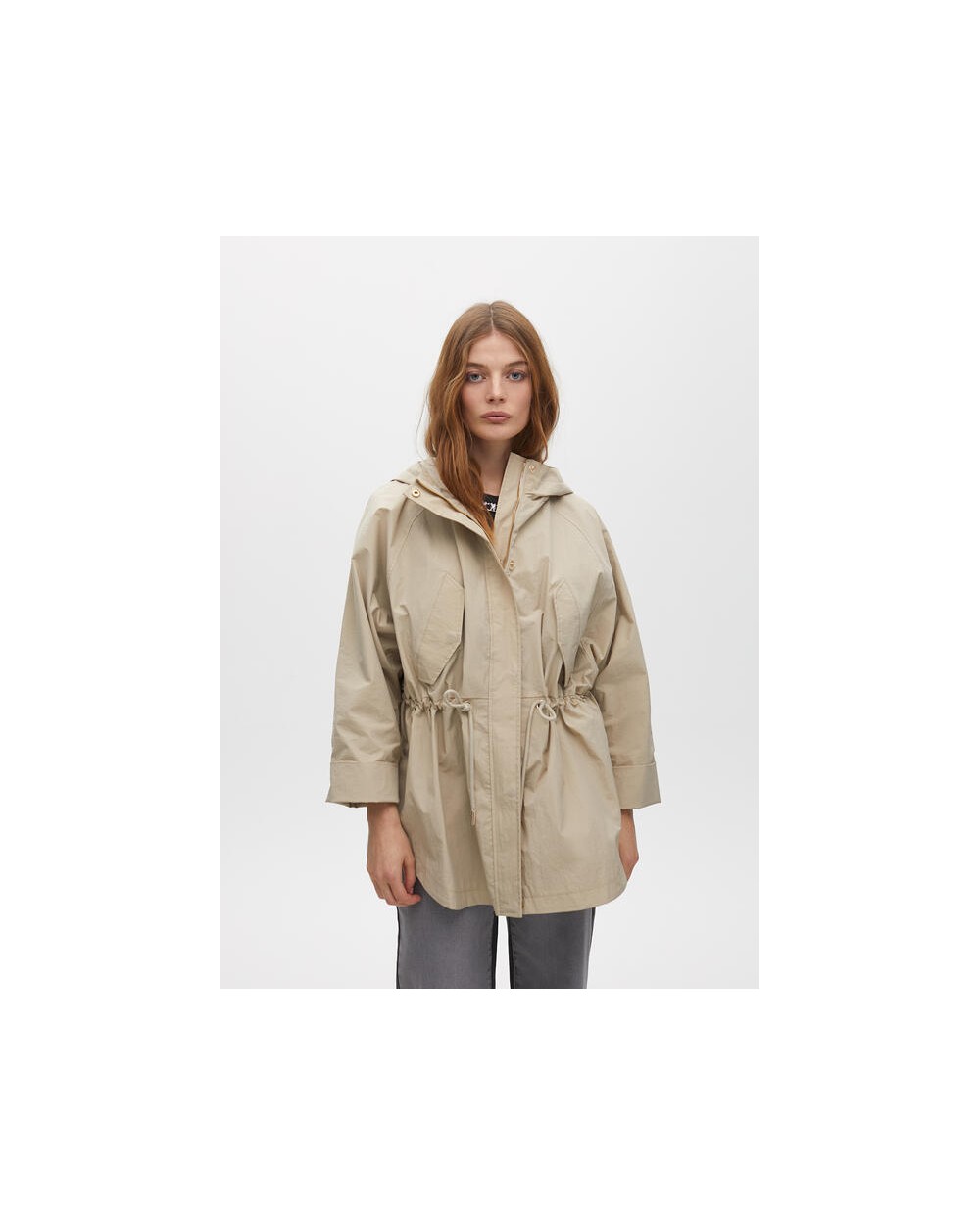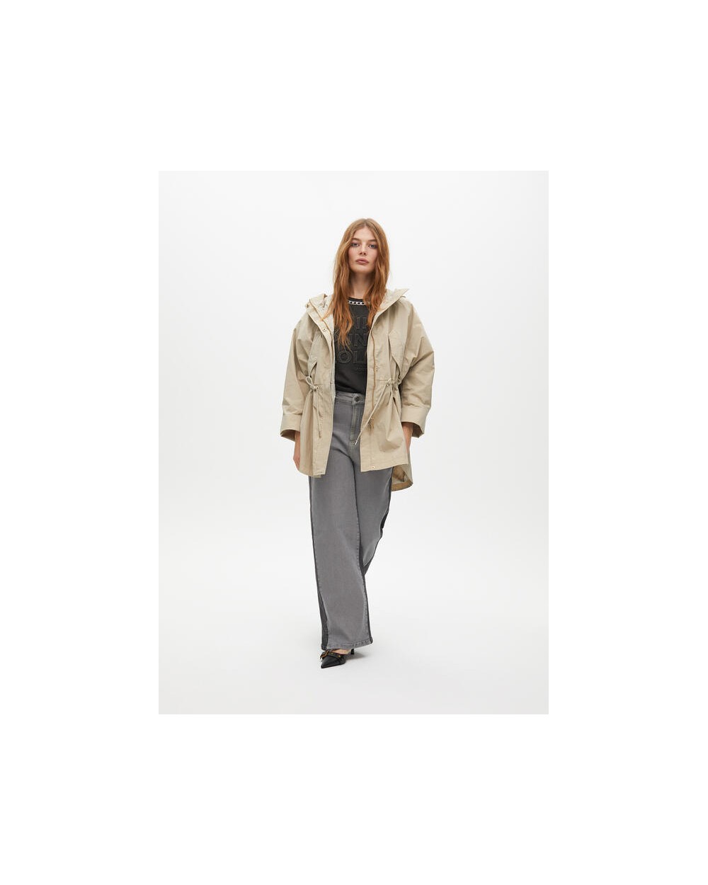 Parka crudo de Lola Casademunt, larga, corte oversize ajustable con cordòn en cintura, capucha a tono.
