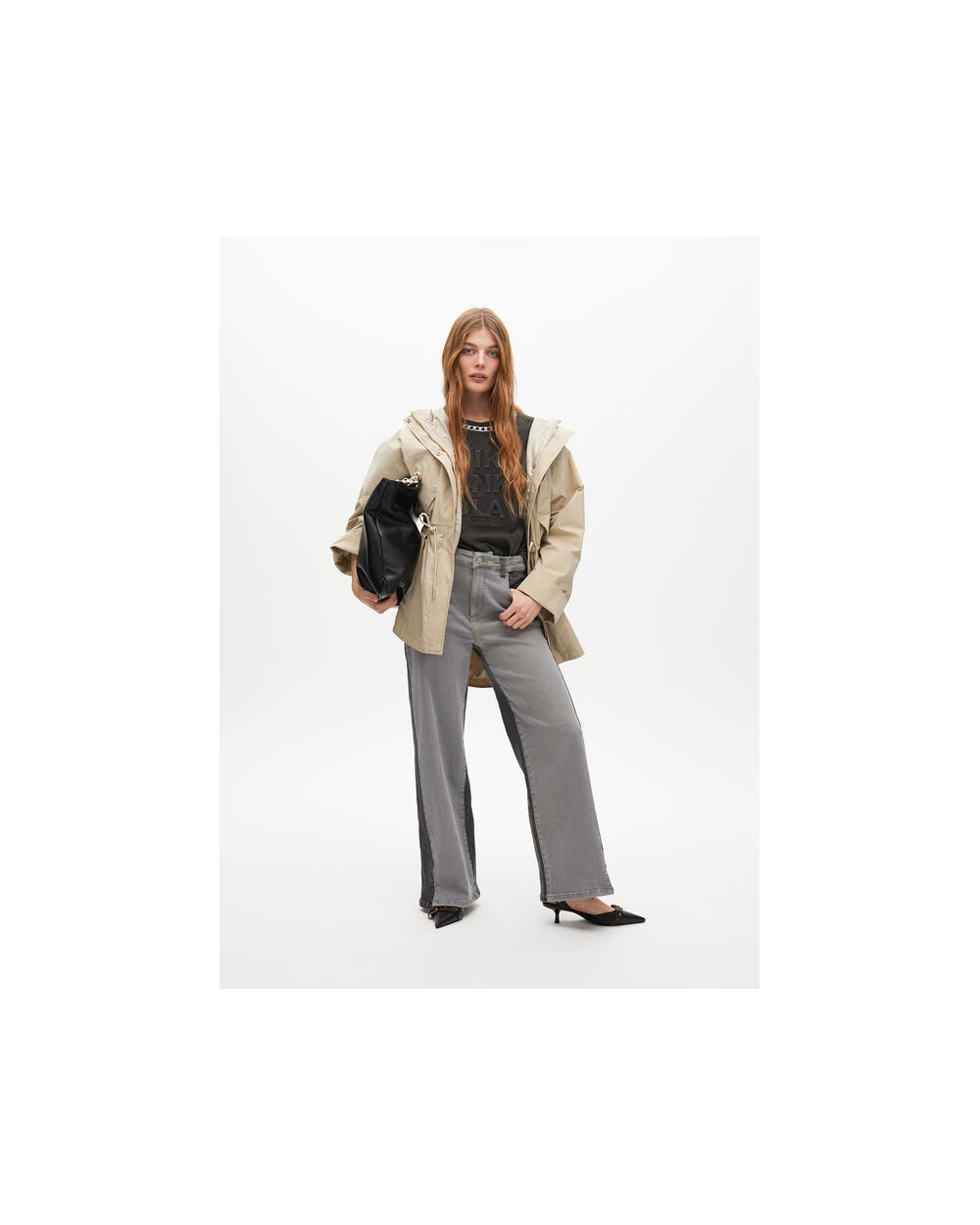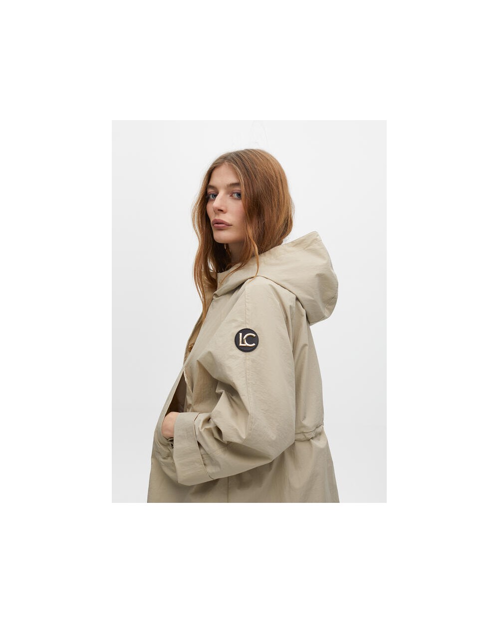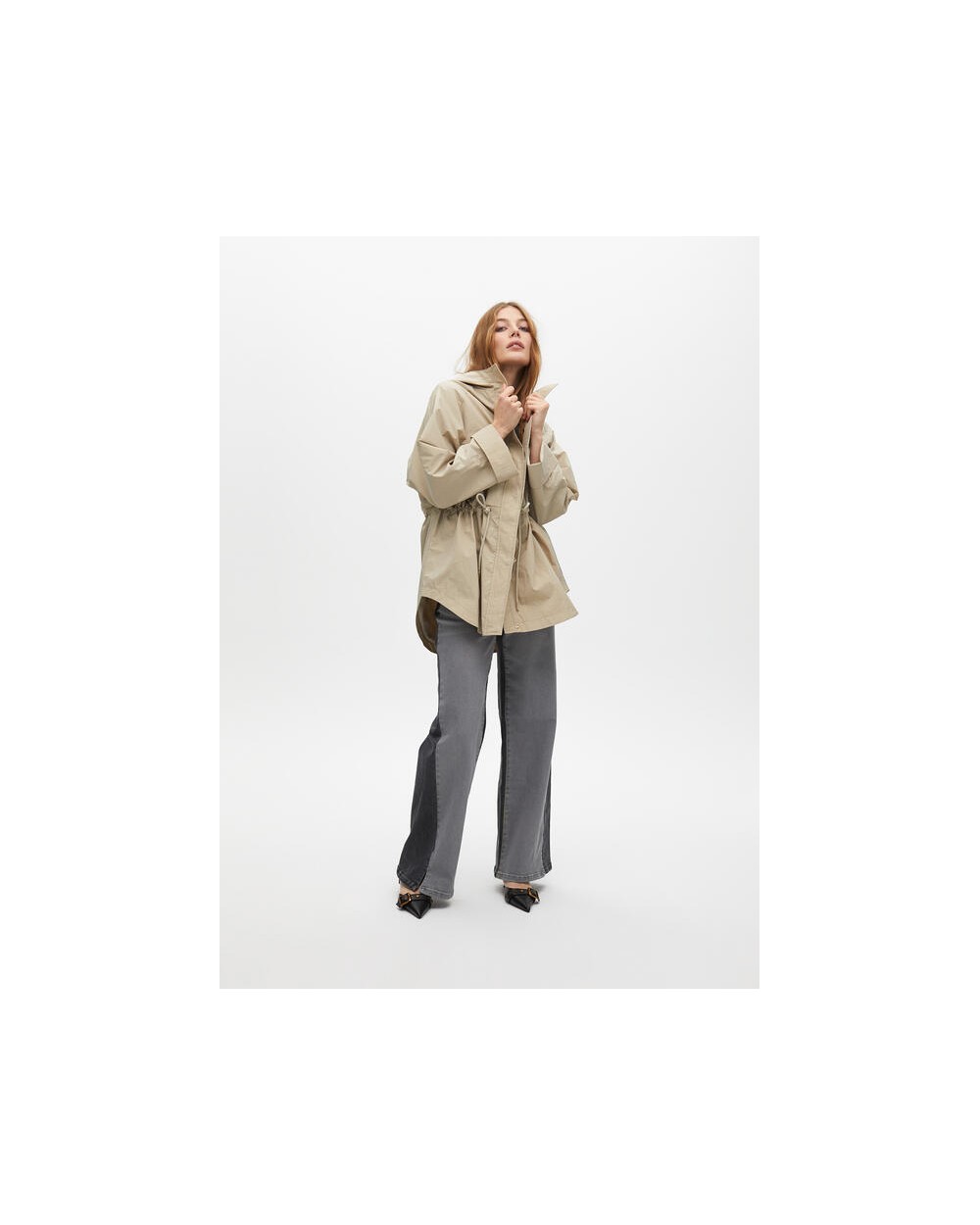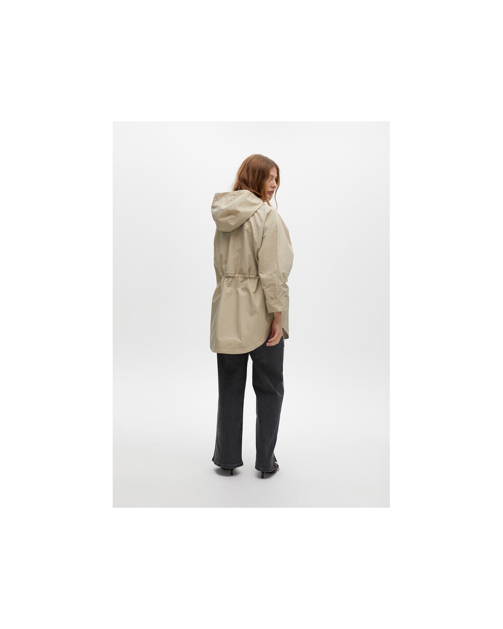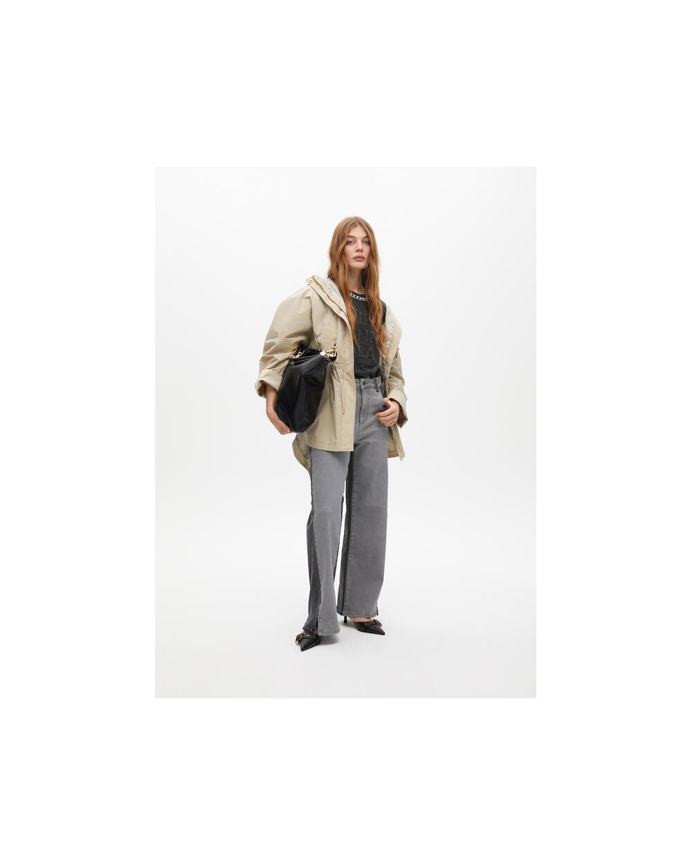 Parka crudo de Lola Casademunt, larga, corte oversize ajustable con cordòn en cintura, capucha a tono.