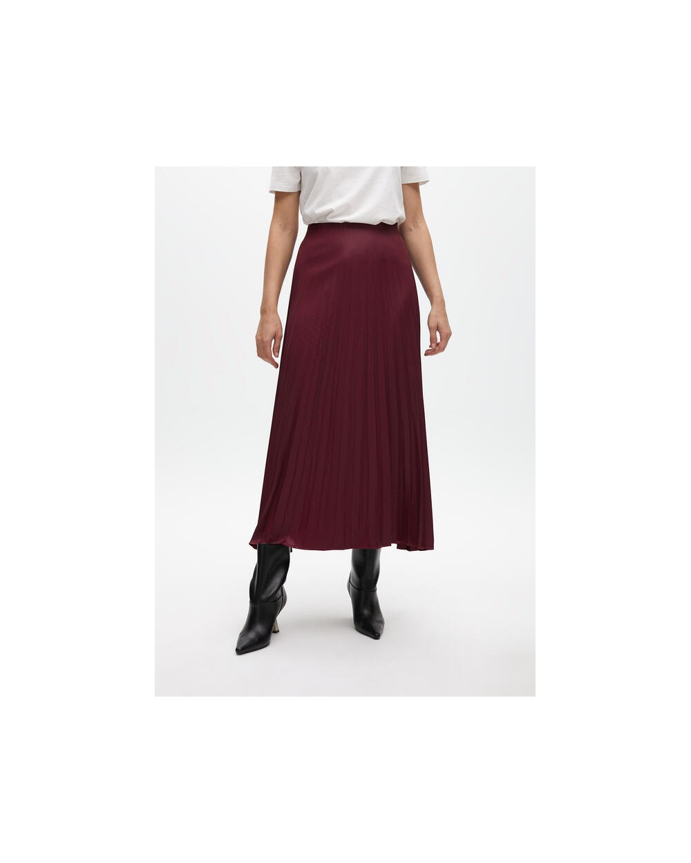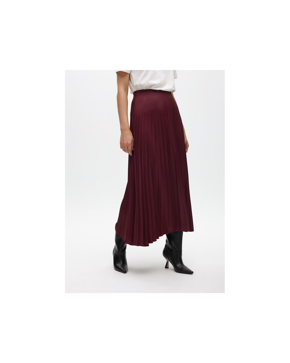 Falda plisada largo midi, en color burdeos,con efecto encerado de Lola Casademunt