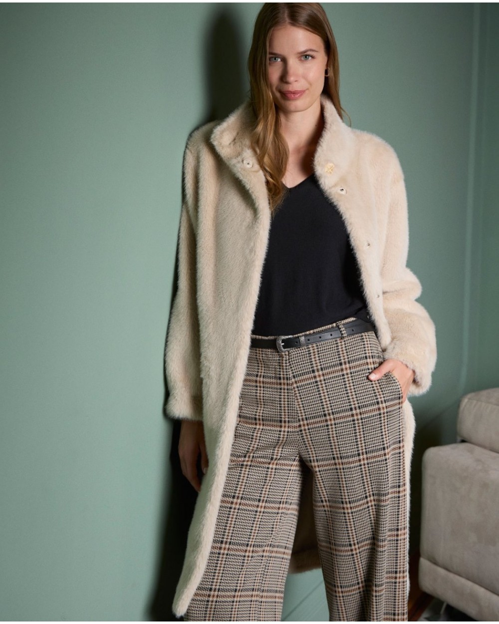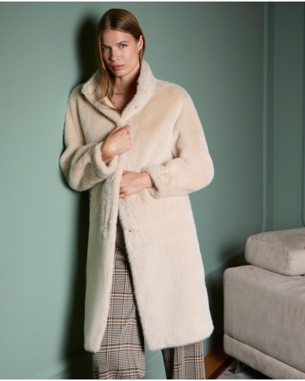 Abrigo de pelo sintètico largo midi en color crudo de Surkana