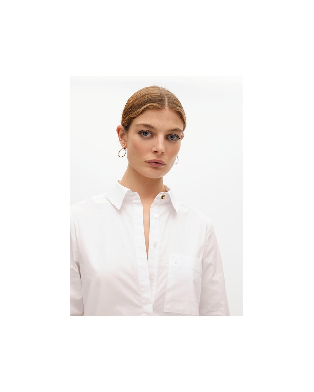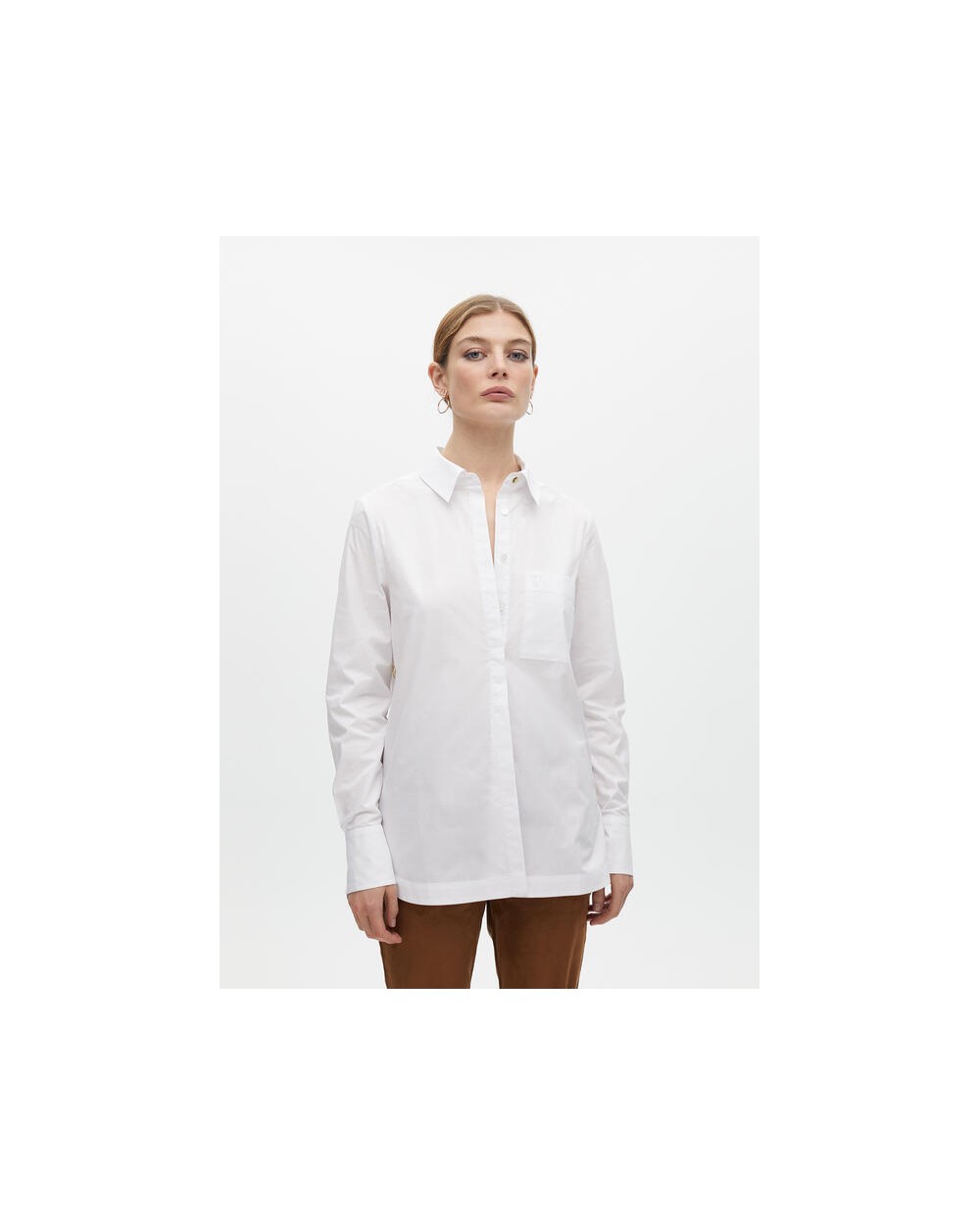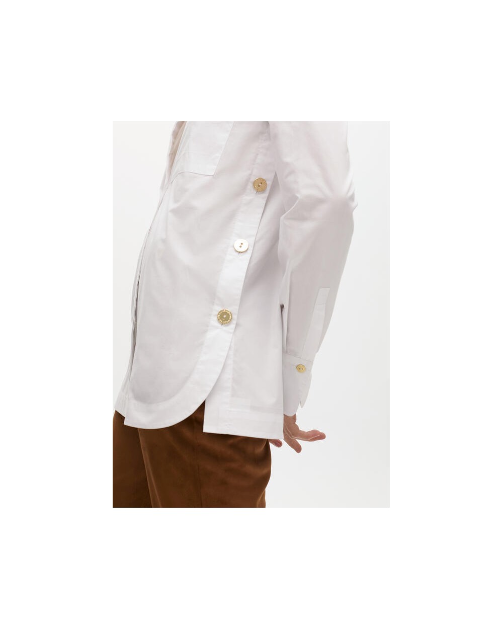 Camisa manga larga blanca, en tejido popelin y con botones en los laterales, con acabadomen redondo.