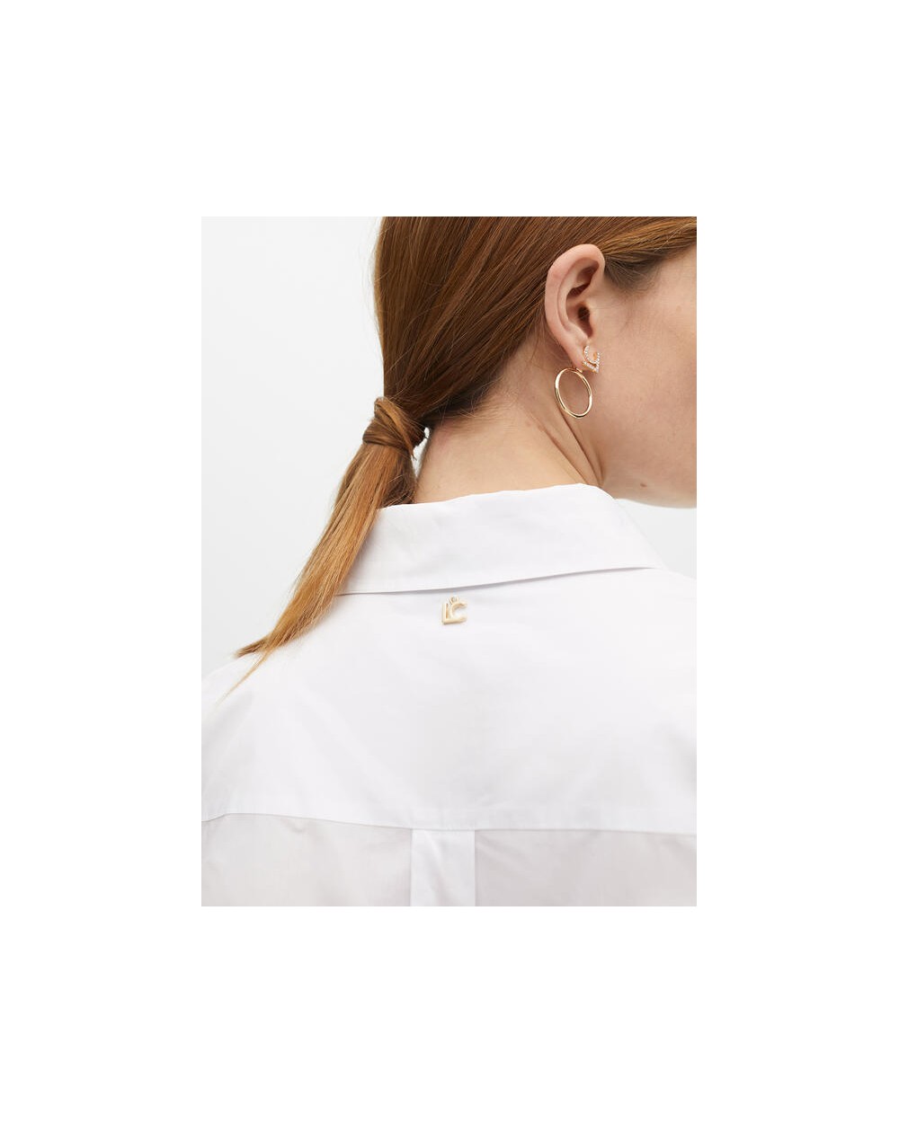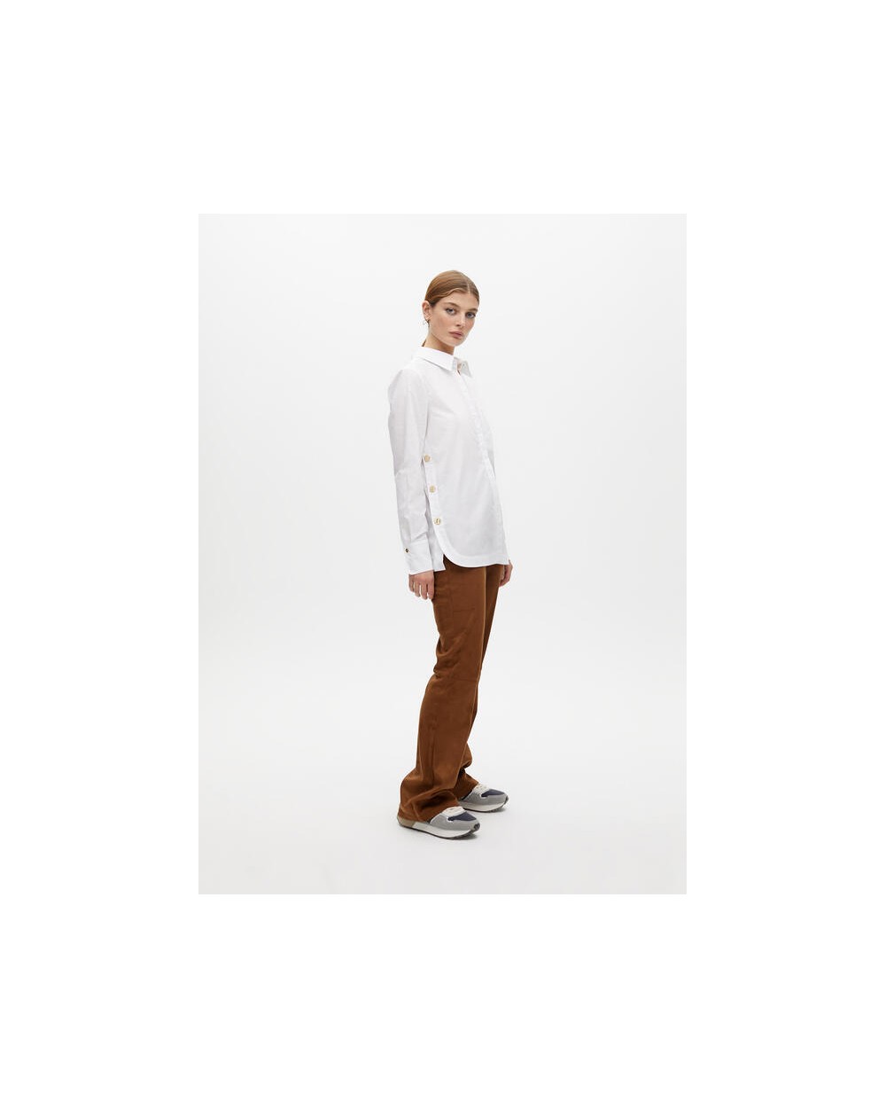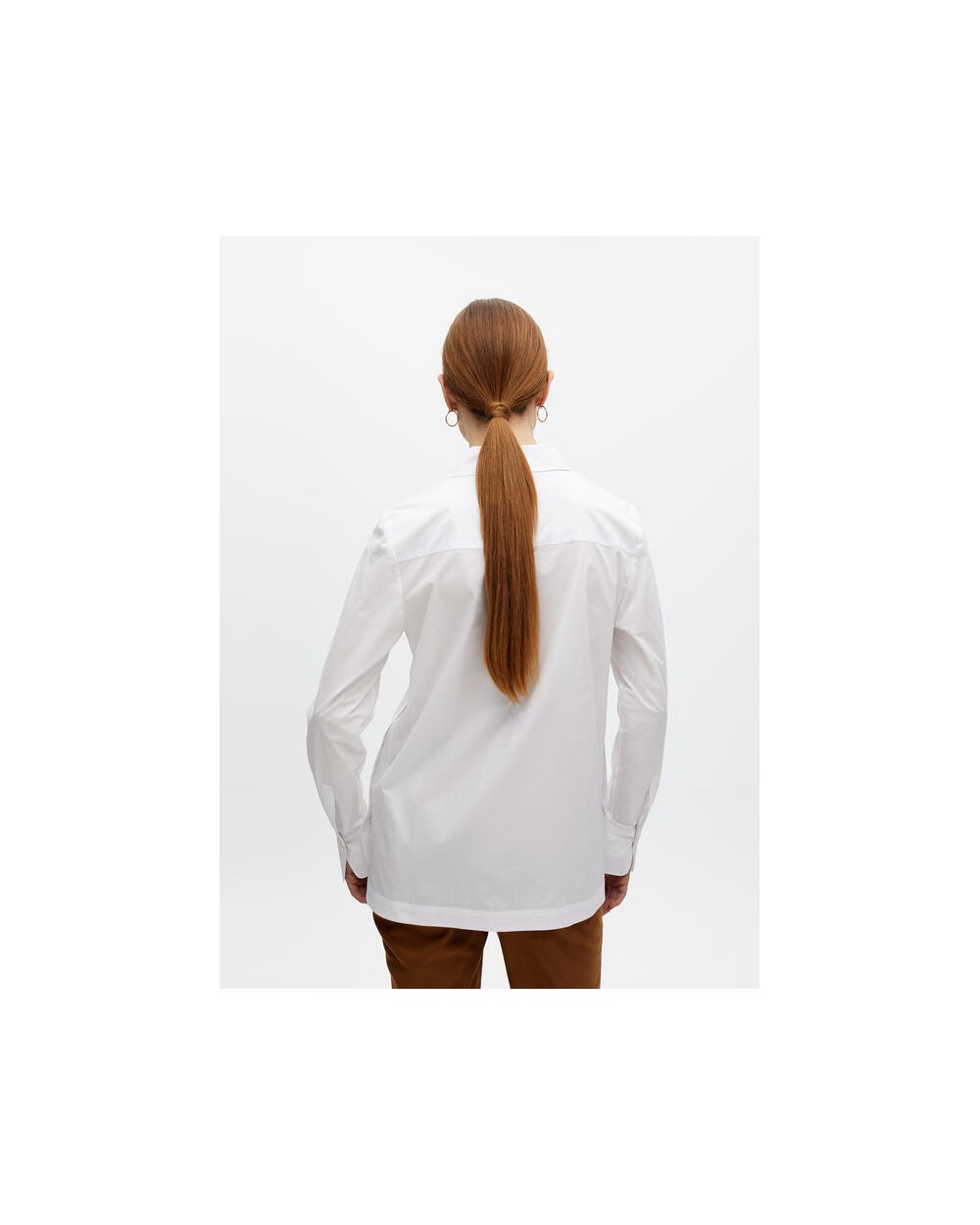 Camisa manga larga blanca, en tejido popelin y con botones en los laterales, con acabadomen redondo.