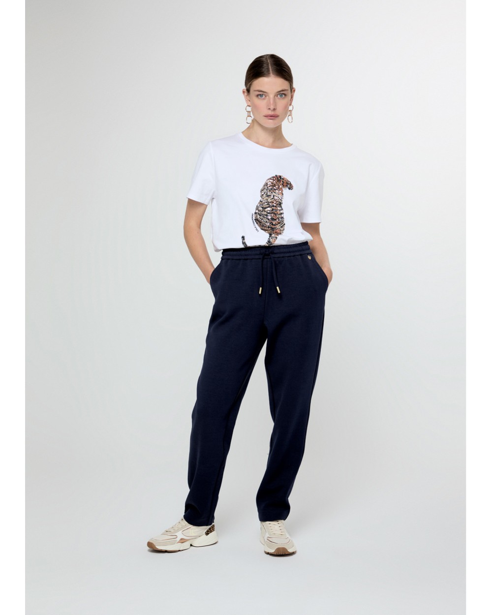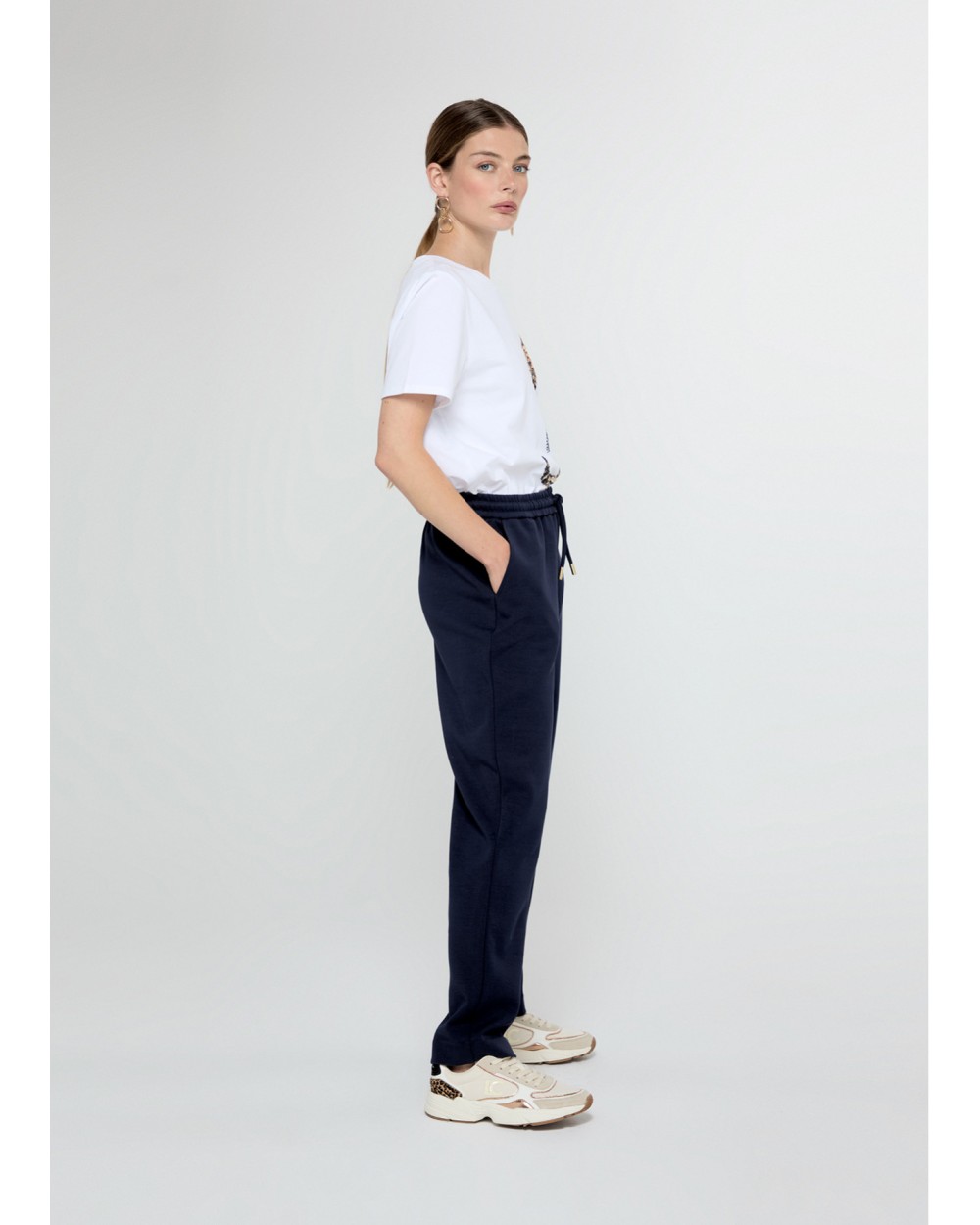 Pantalón jogger confeccionado con tejido elástico de alta calidad. Incluye cinturilla ajustable con cordón y detalles metálicos.