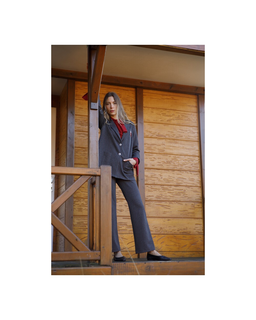 Americana de punto con escudo planchado es mucho más que una prenda de temporada: es una inversión en elegancia y versatilidad. Con su pantalòn a juego tendràs un look perfecto.
