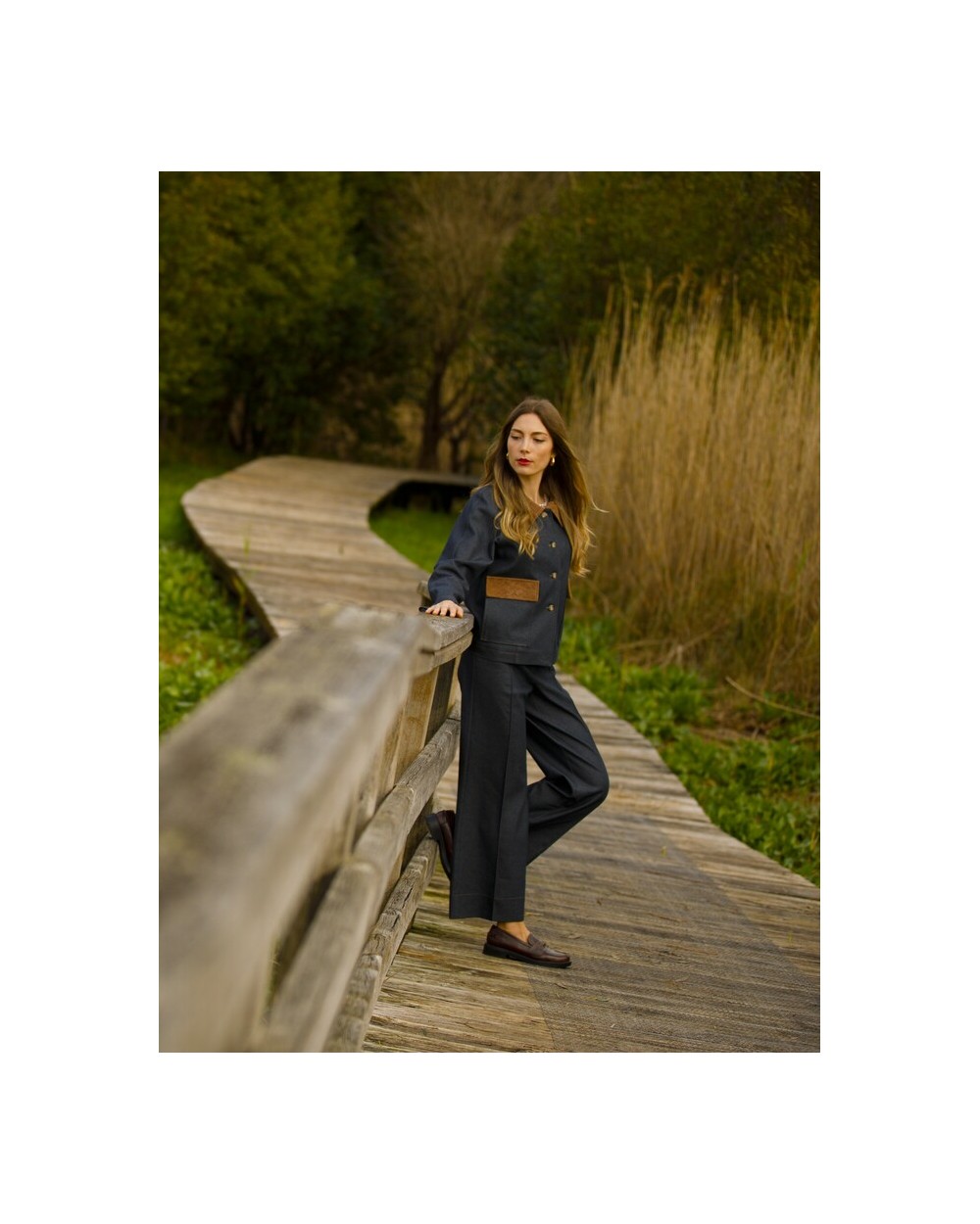 Pantalón tejano combina la comodidad del denim con un diseño refinado y actual. Su pierna recta y el nervio delantero estilizan la figura, mientras que los bolsillos laterales añaden practicidad sin perder elegancia. Confeccionado en un denim suave y resistente, es perfecto tanto para un look casual como para un outfit más pulido con su chaqueta a juego.