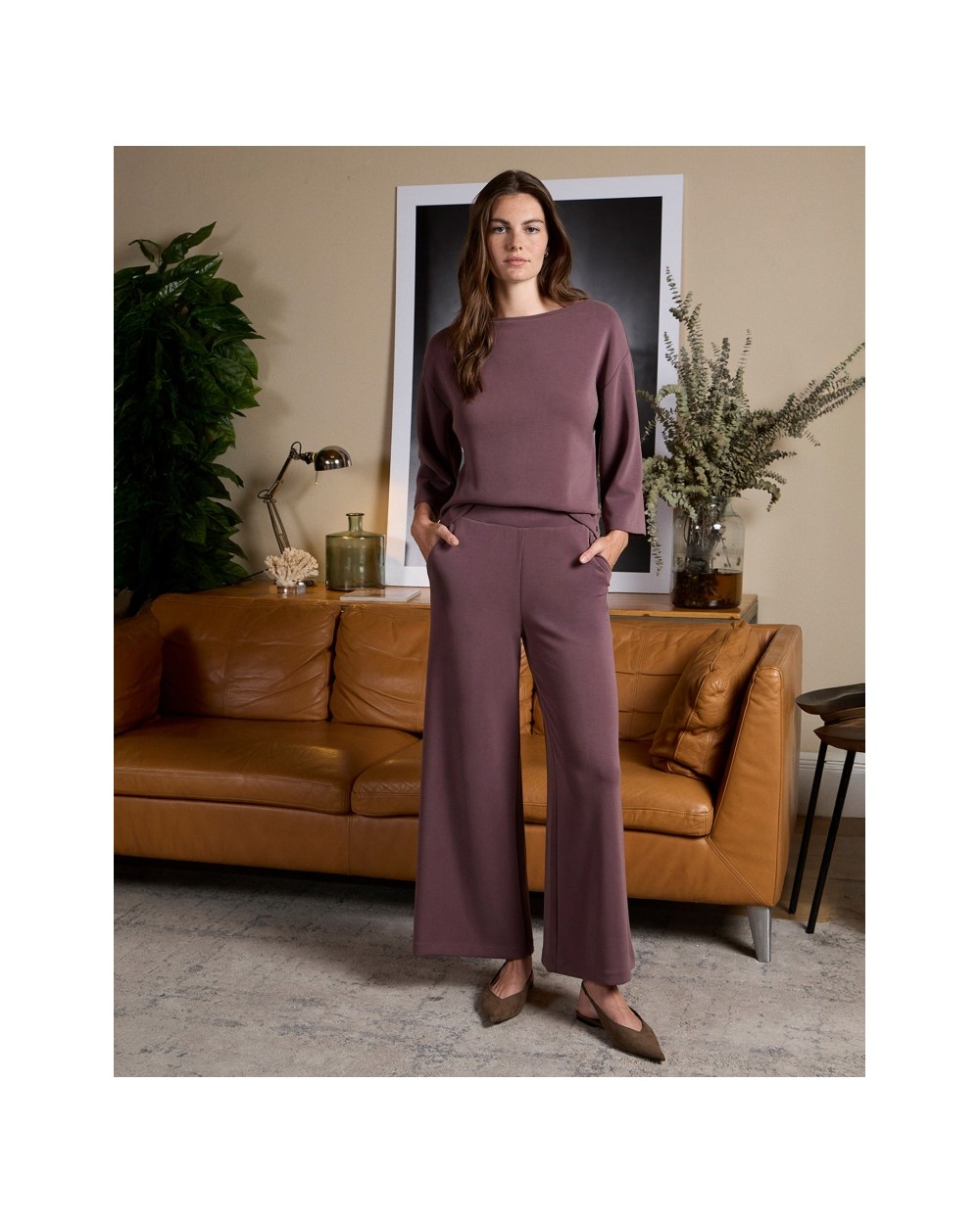 Pantalón de pierna ancha confeccionado en modal grueso, un tejido suave, elástico y cómodo que realza el movimiento. Su diseño sin cierres asegura máxima comodidad.