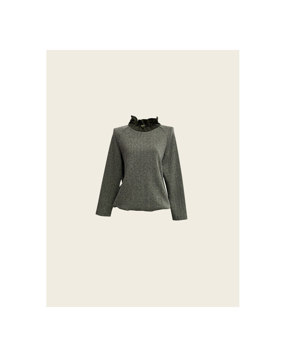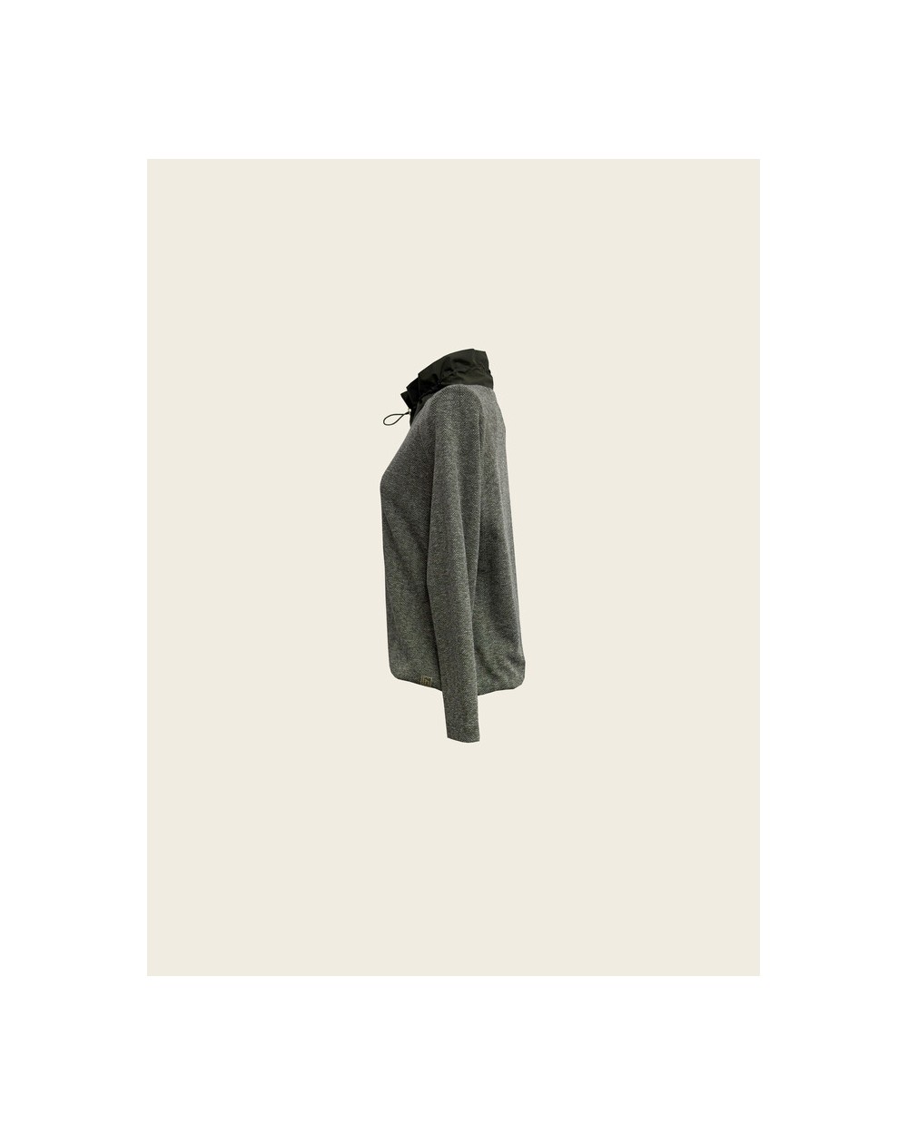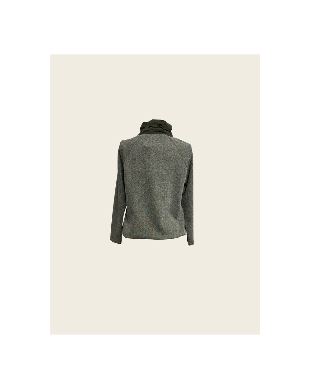 Sudadera en tono verde jaspeado con diseño cómodo y versátil. Cuello y bajo en tela de gabardina a contraste en tono kaki. Su corte relajado con manga ranglan aporta libertad de movimiento y un aire moderno, mientras que el bajo ajustable con cordón permite adaptarla a la silueta, logrando un look más entallado o desenfadado según la ocasión. El tejido suave y ligero la convierte en una prenda práctica y confortable, perfecta para el día a día.