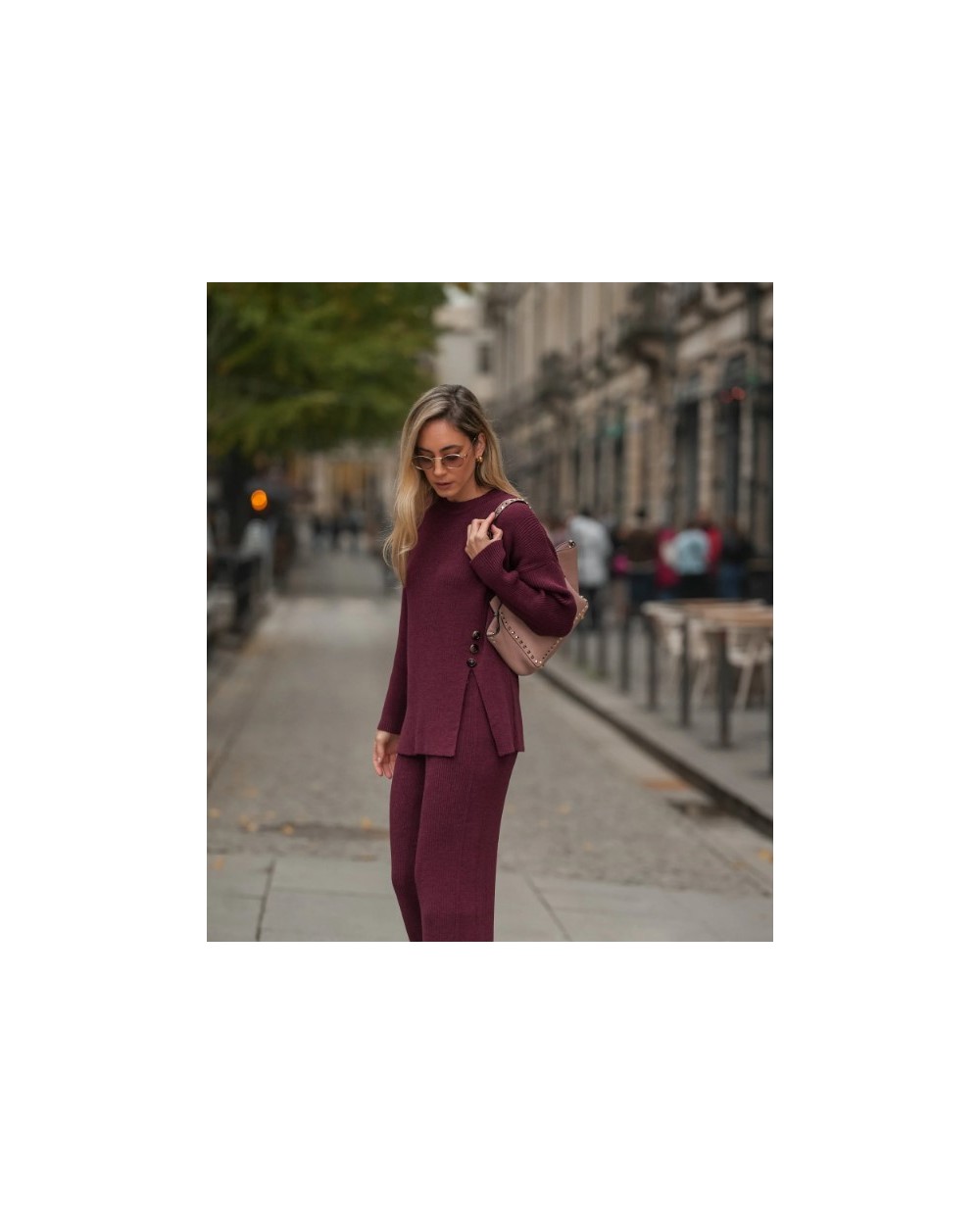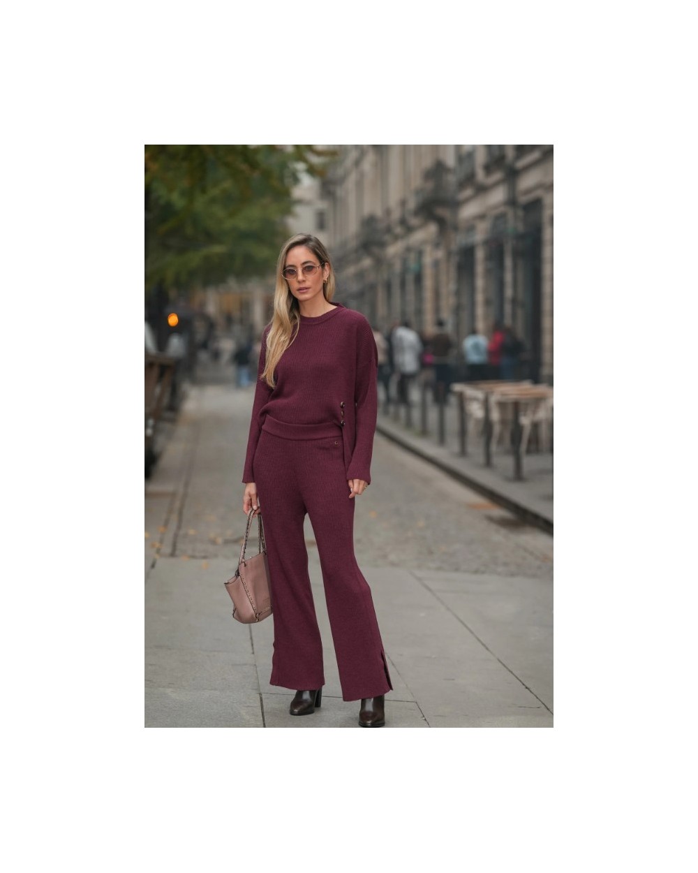 Jersey escote redondo en punto acanalado con mangas largas, con hombros ligeramente caídos y aberturas laterales con detalle de botones decorativos