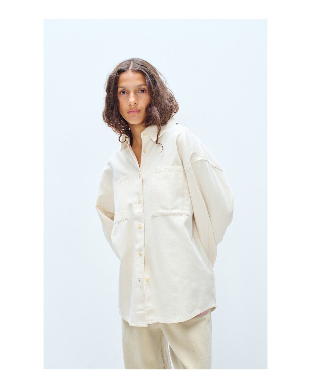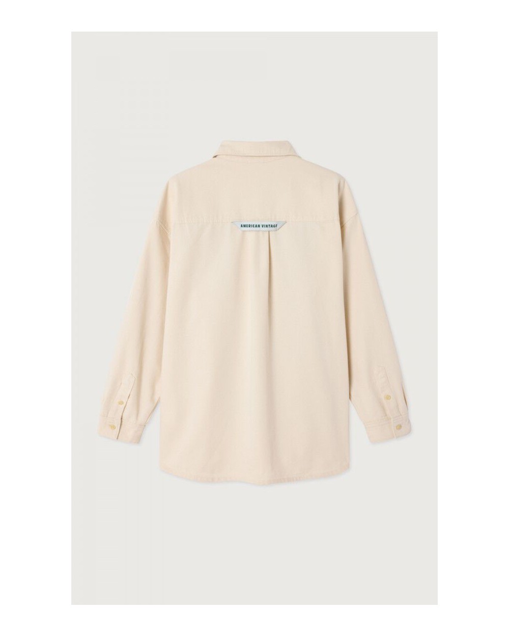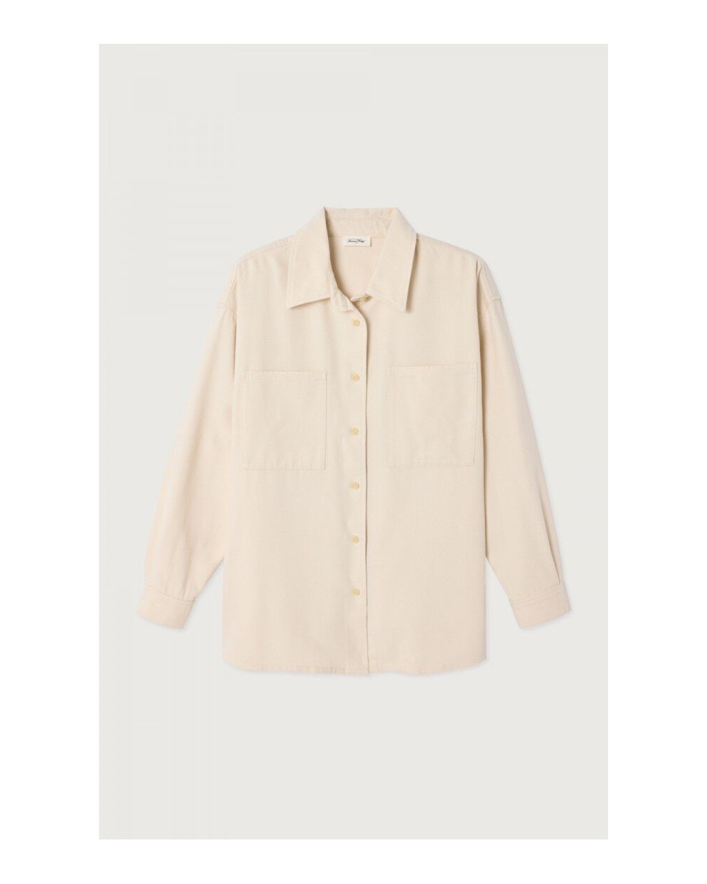 Camisa de manga larga de corte amplio y cuello clásico, cierre con botones, dos bolsillos de parche en el pecho, confeccionado en algodòn ligero.