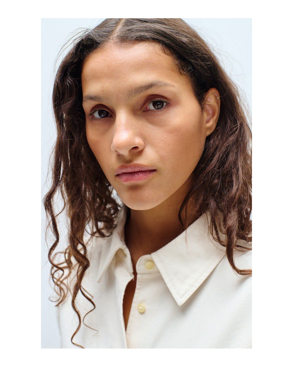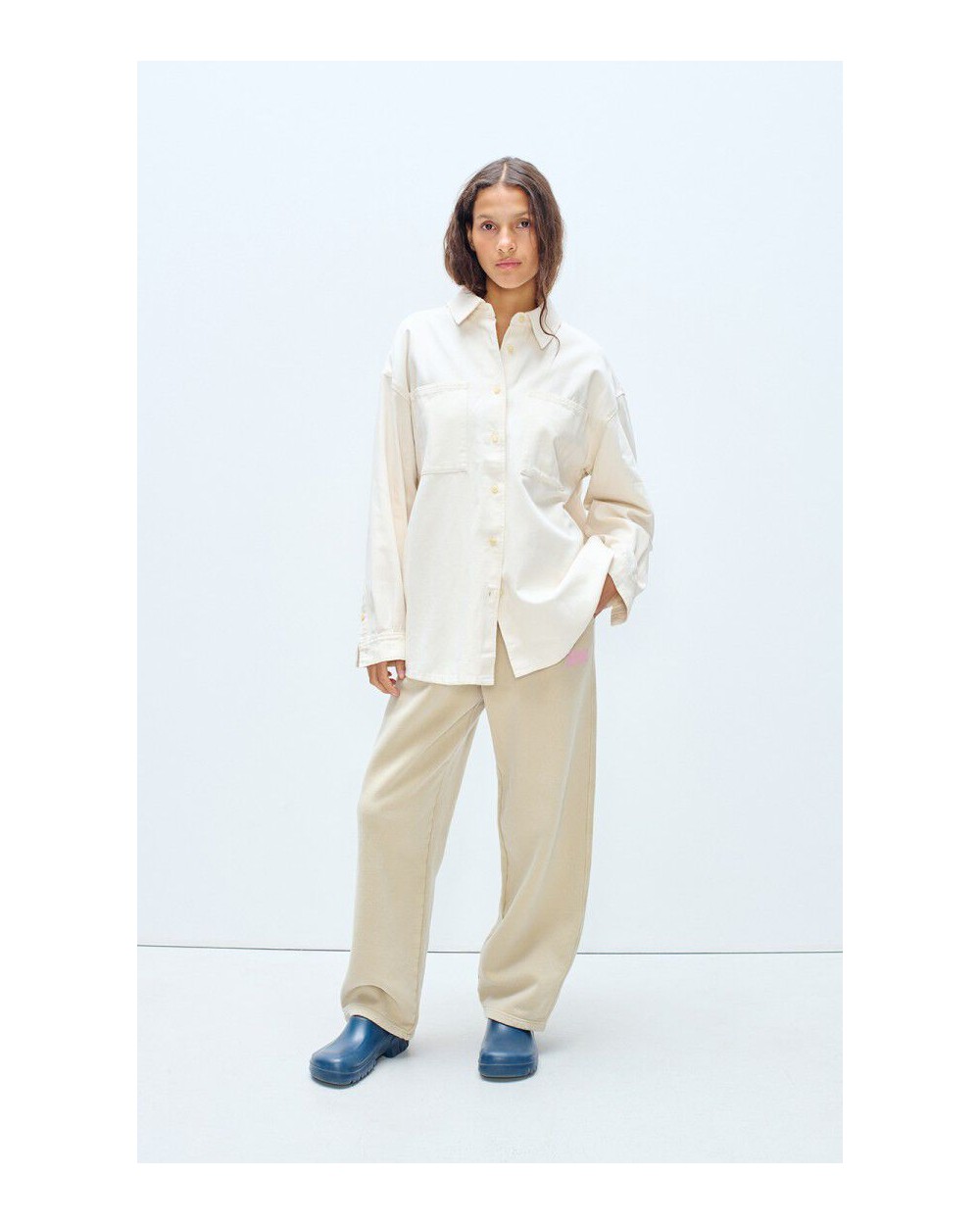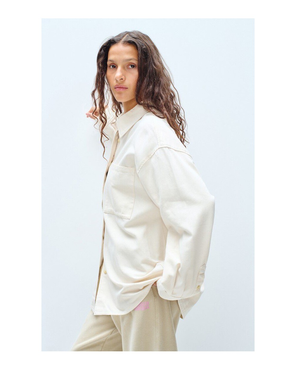 Camisa de manga larga de corte amplio y cuello clásico, cierre con botones, dos bolsillos de parche en el pecho, confeccionado en algodòn ligero.
