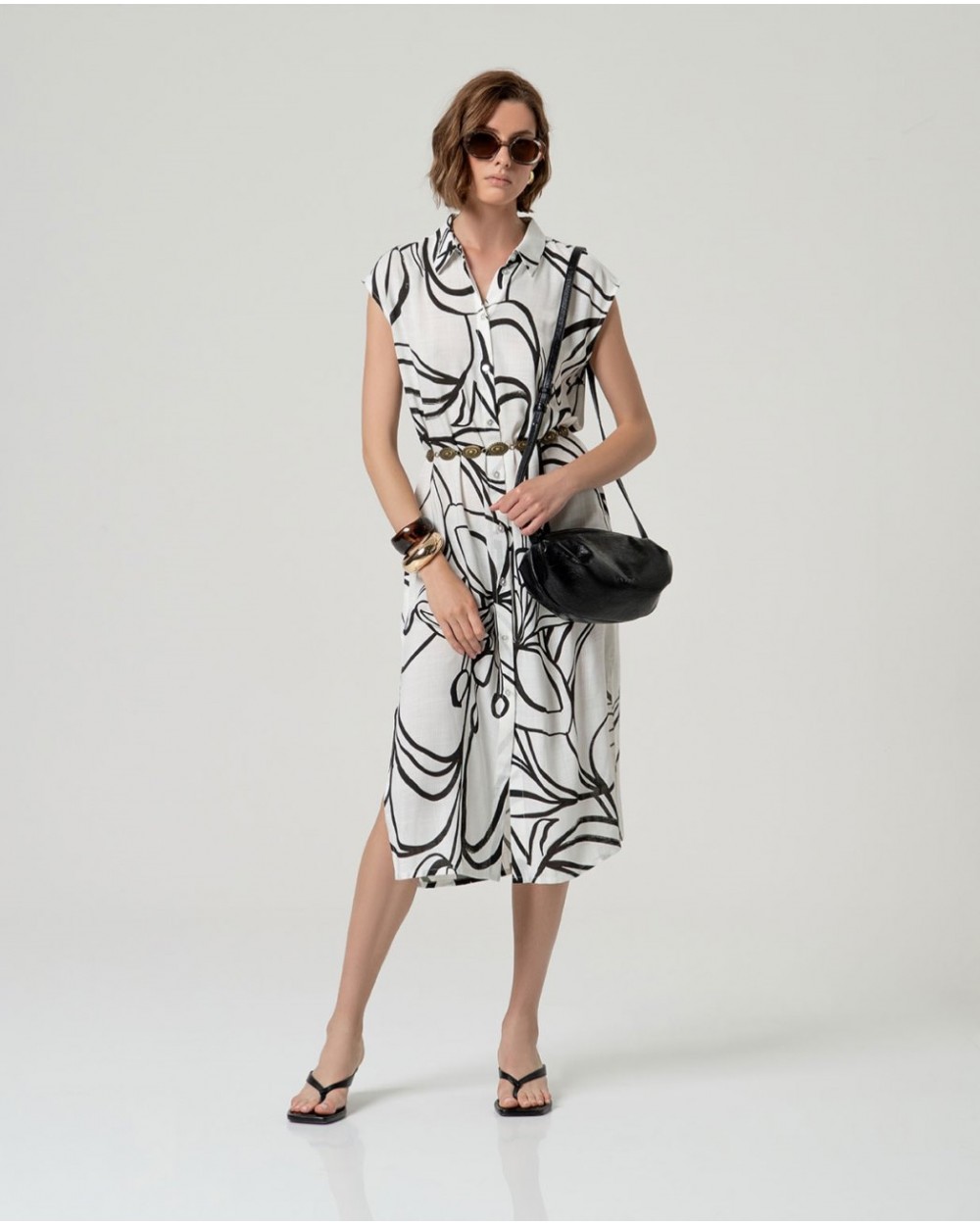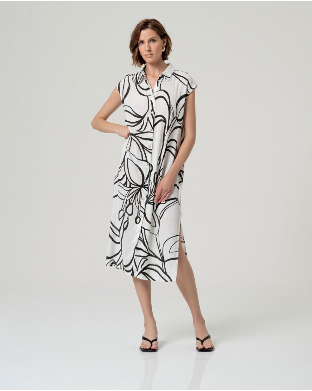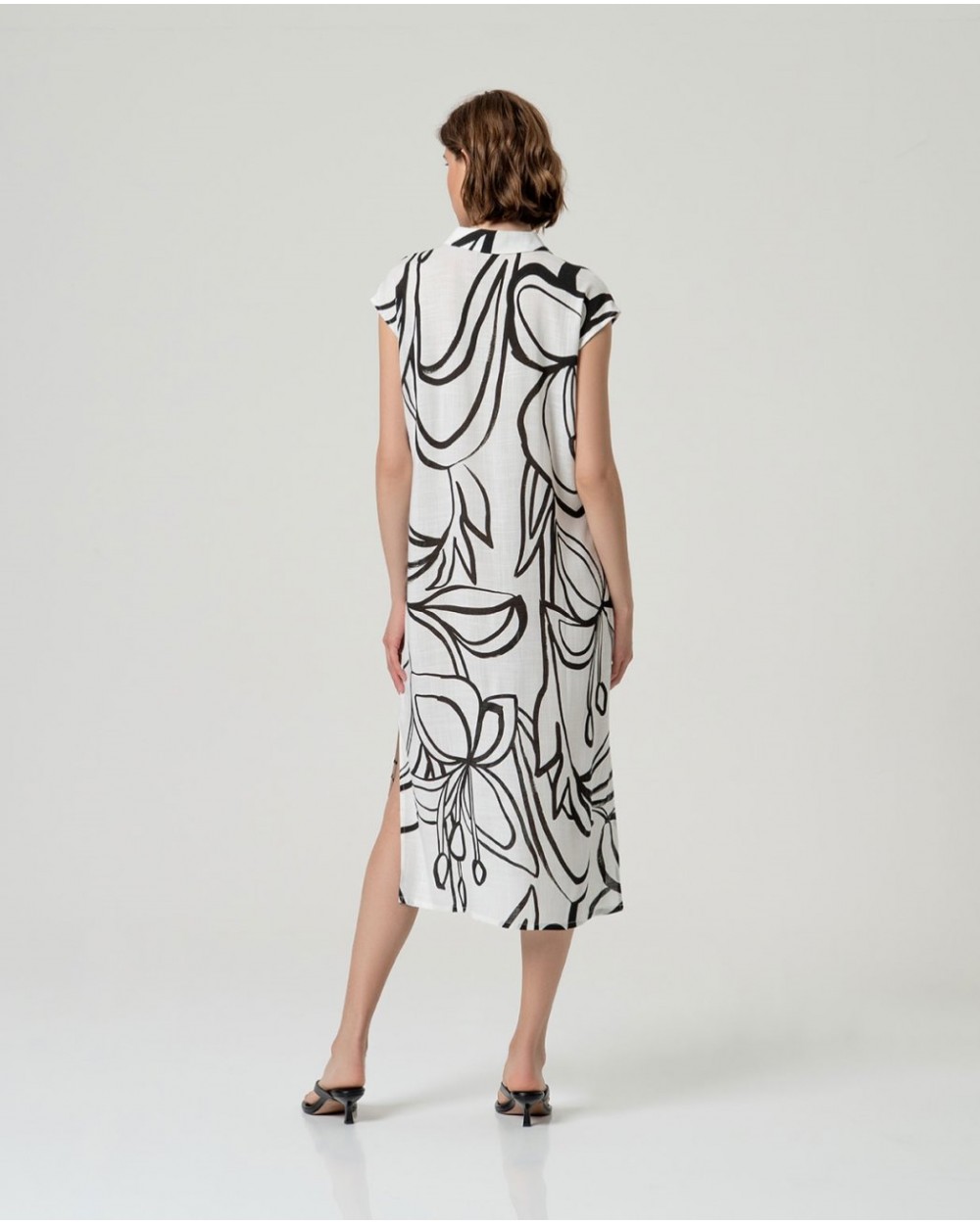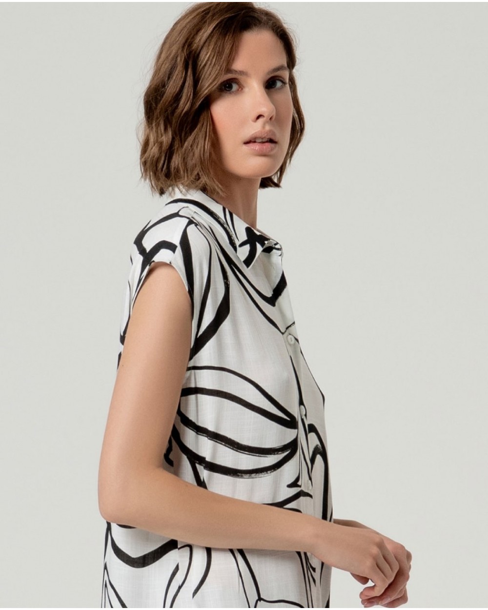 Camisa larga sin mangas en blanco con estampado negro de Surkana