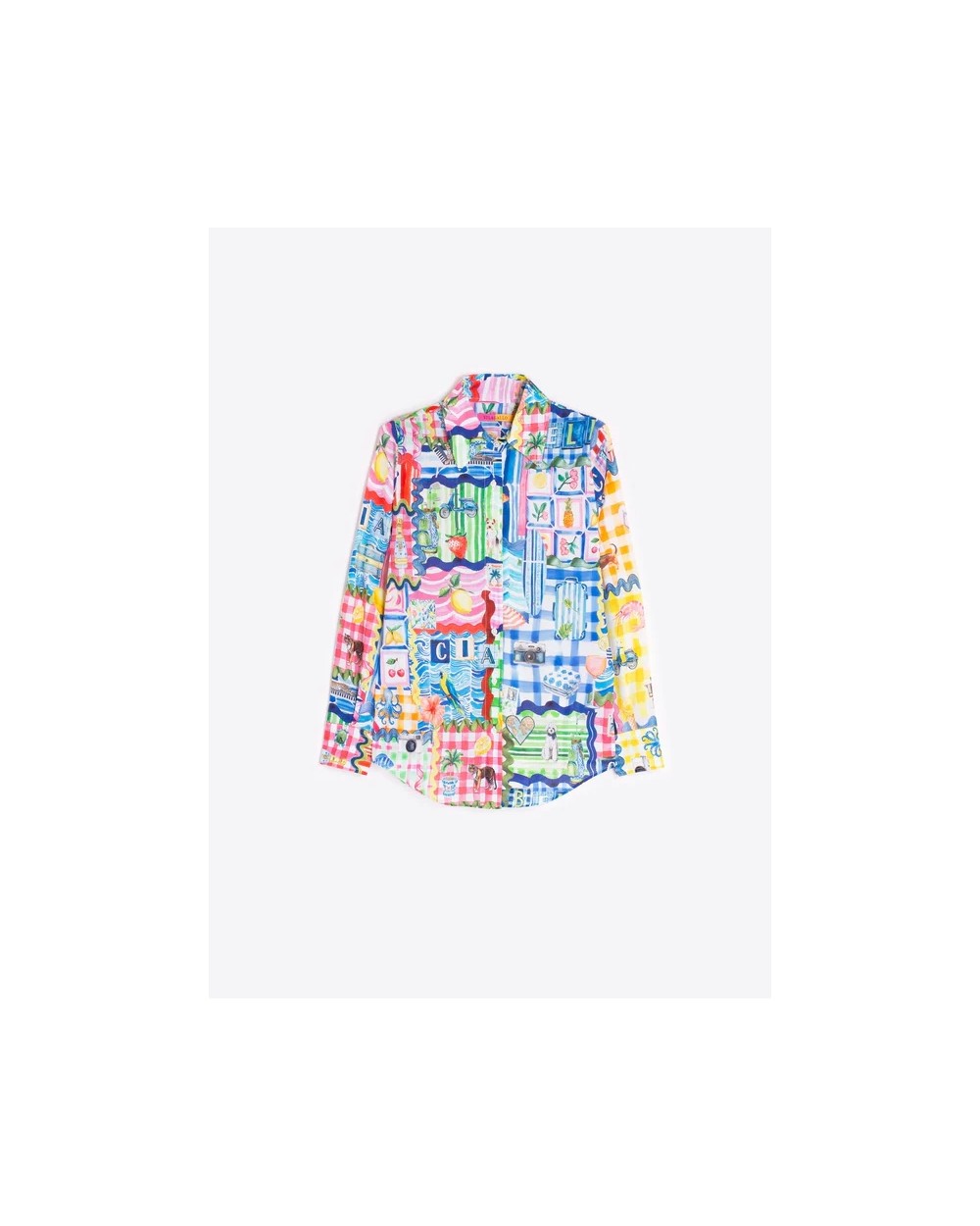 Camisa con estampado capri con motivos de inspiración veraniega. Cuello camisero, cierre frontal con botones, manga larga con botonadura y bajo redondeado.