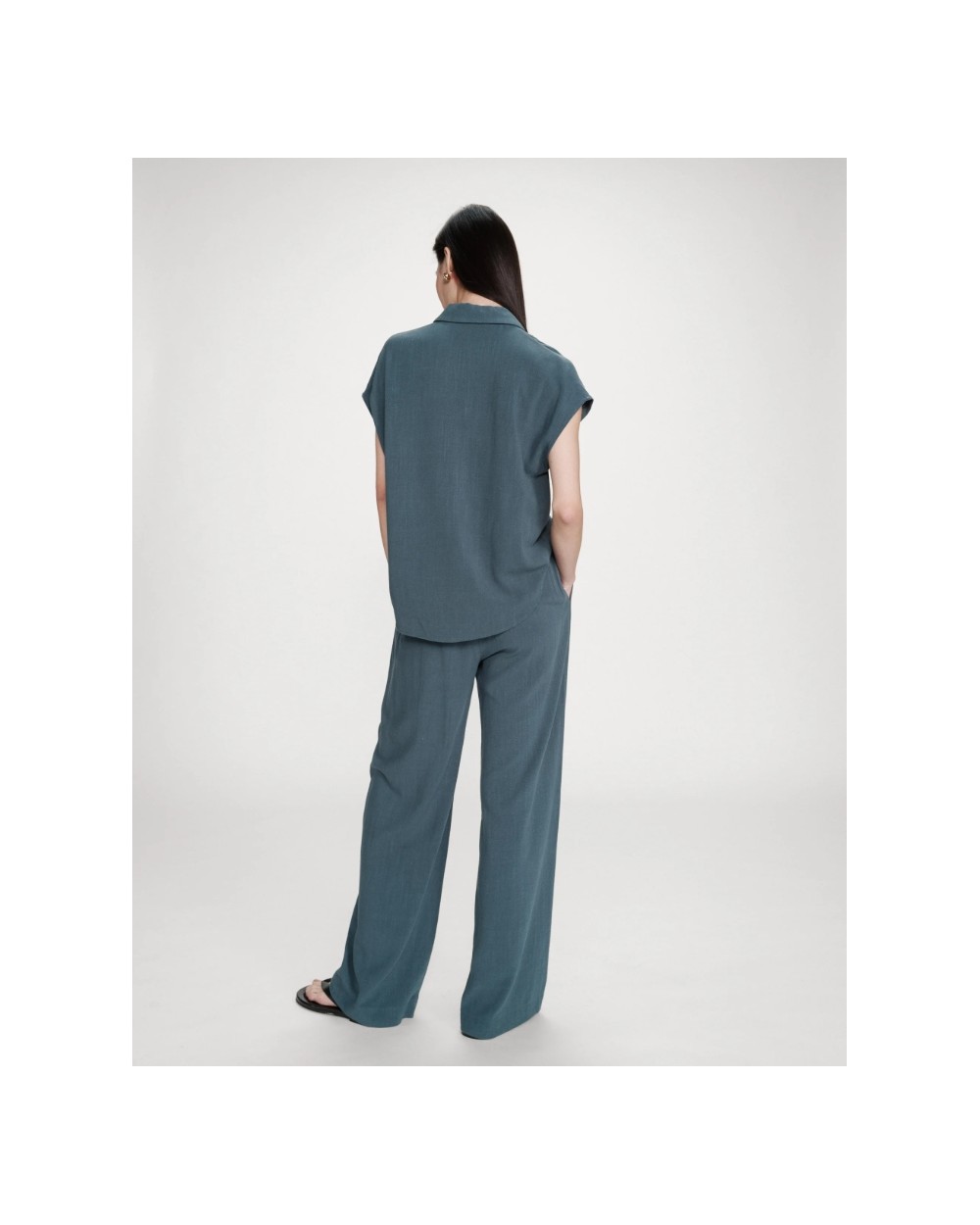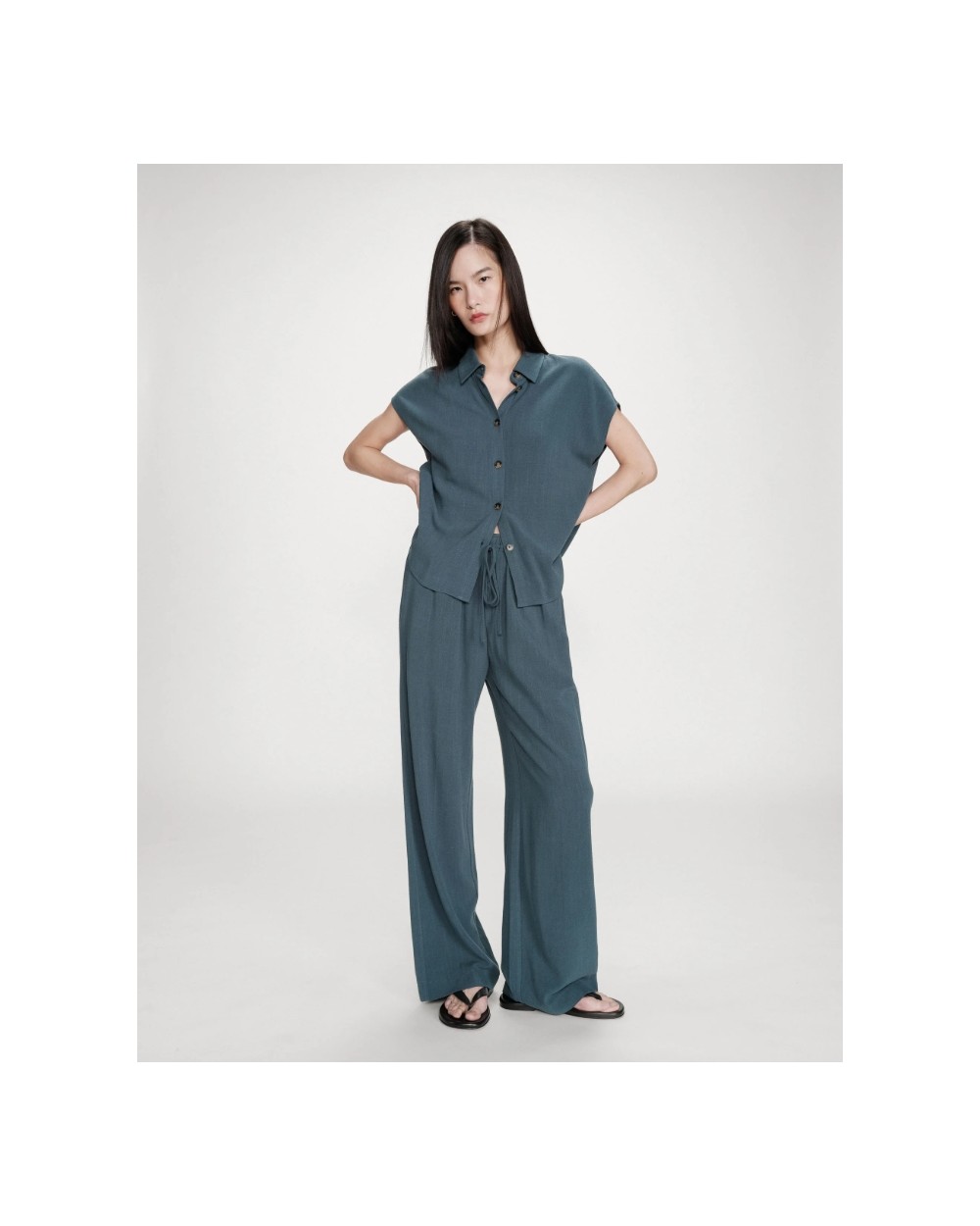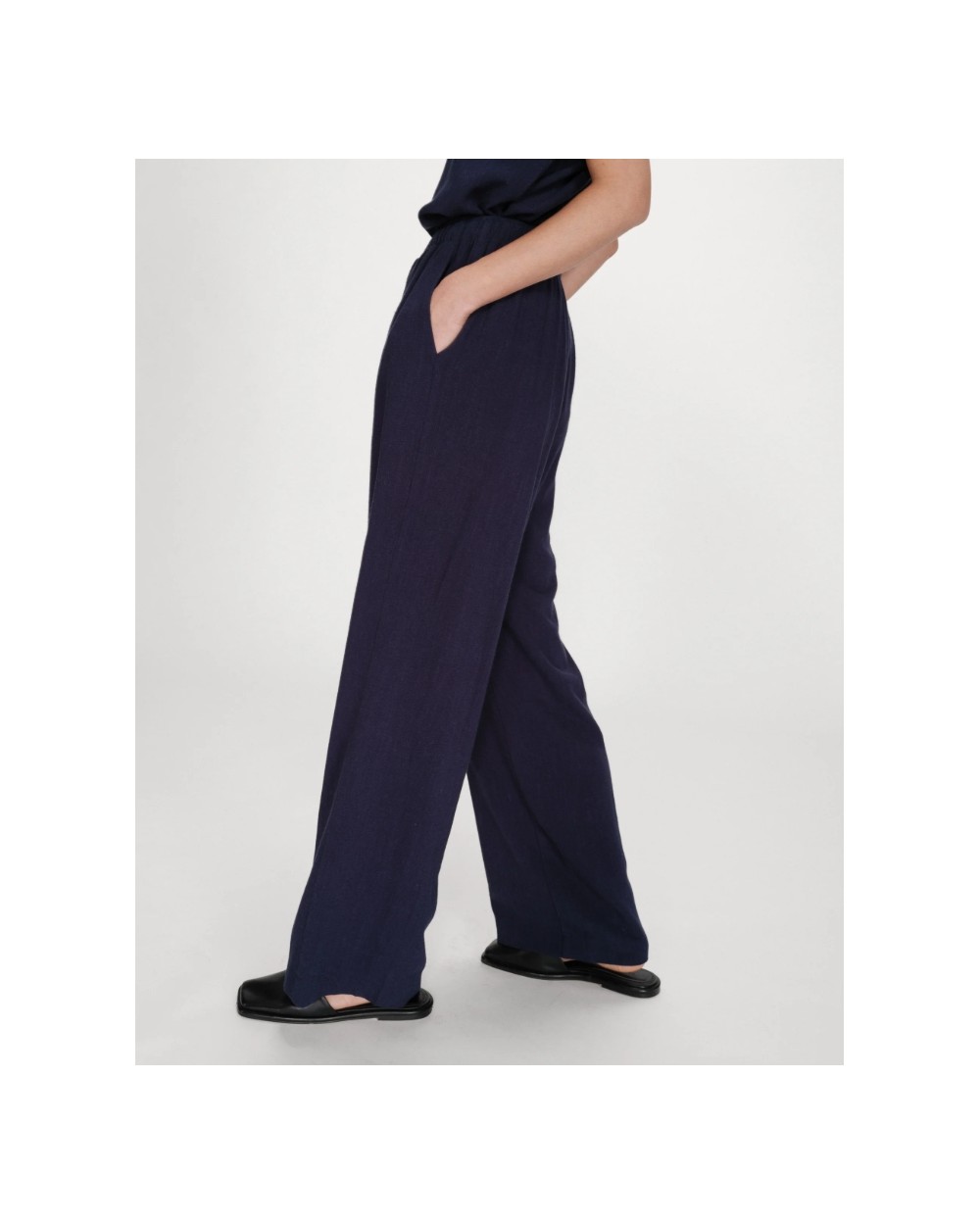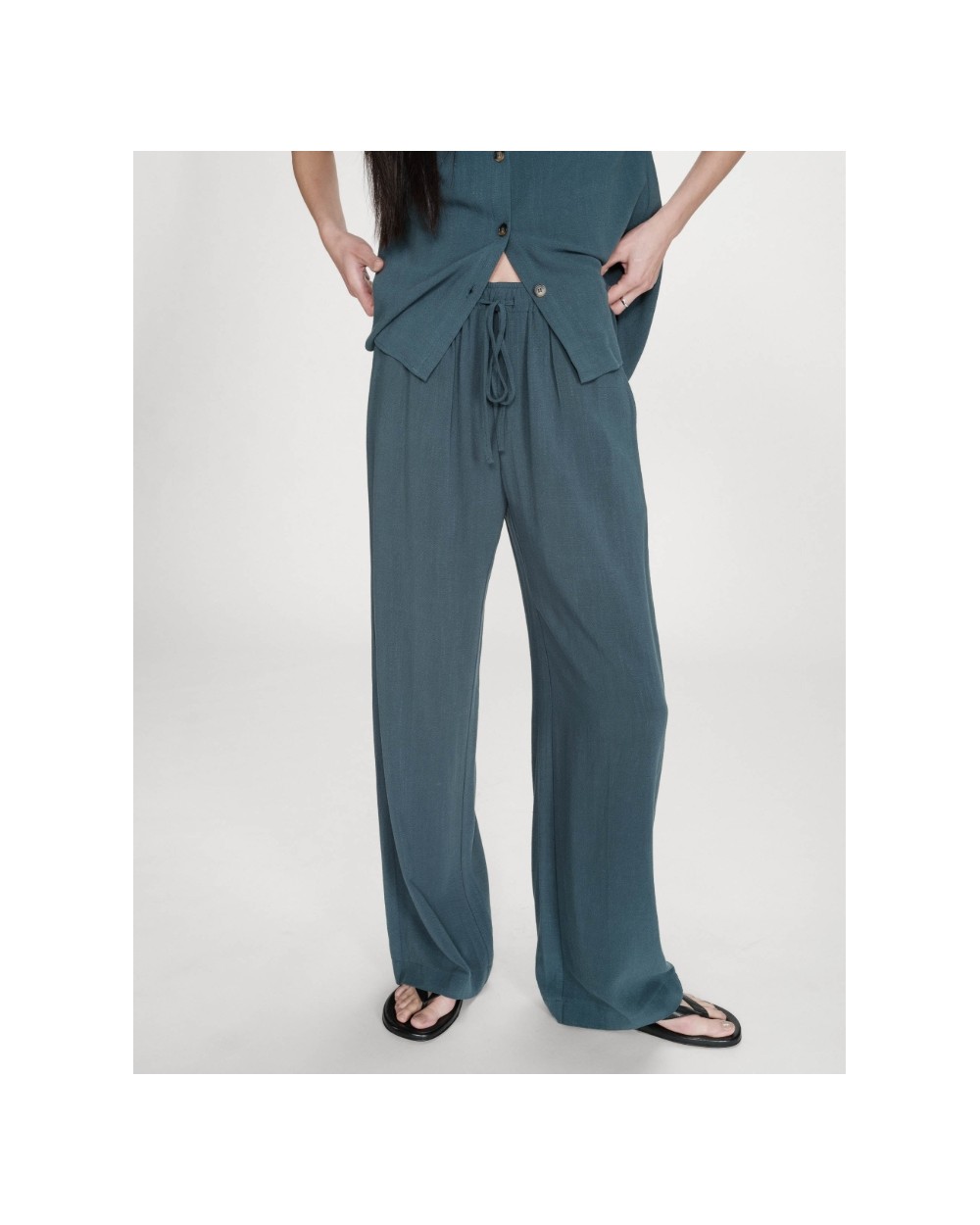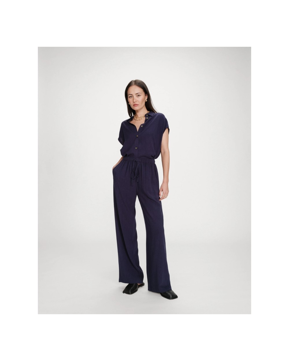 Los pantalones de pierna ancha RAVEN, hechos de una mezcla de lino, son sencillos y modernos. El modelo presenta una cintura elástica alta con cordón y un corte recto que favorece las curvas femeninas. Los pantalones fluidos RAVEN son una prenda minimalista y femenina que encaja fácilmente en tu armario diario.