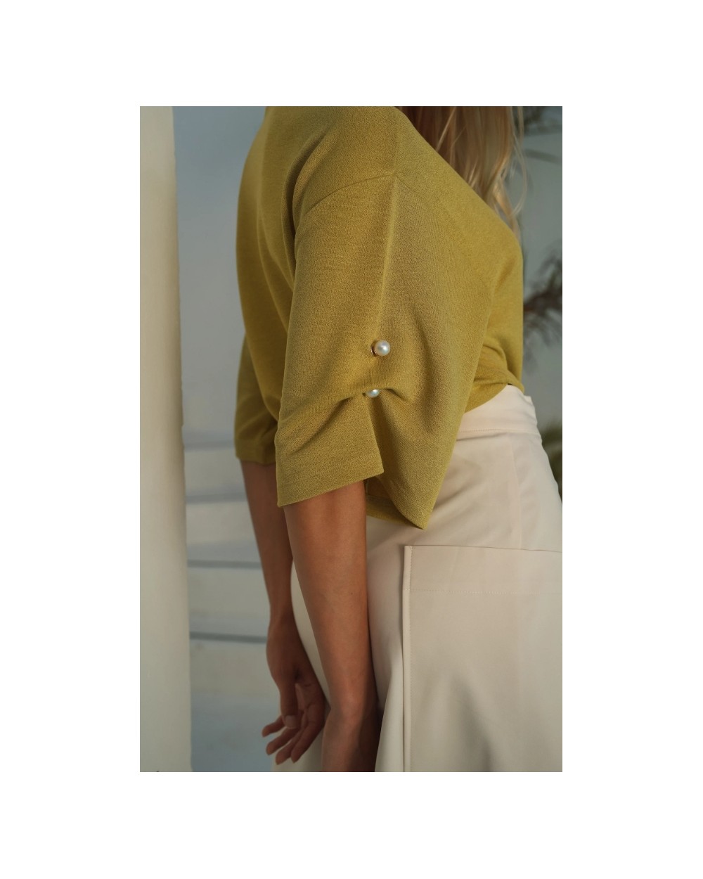 Camiseta con perlas en mangas Guimanos