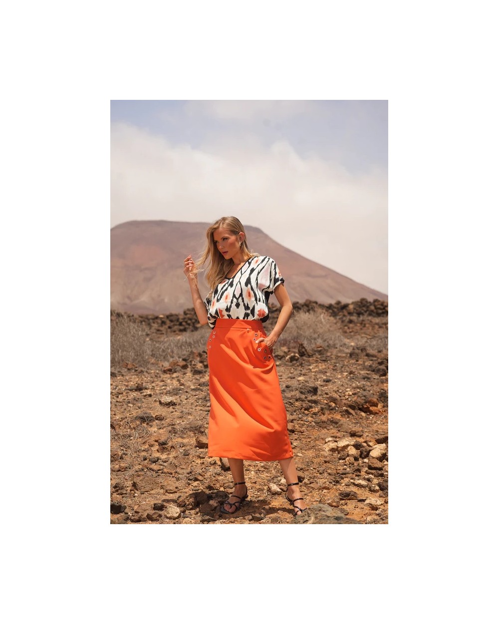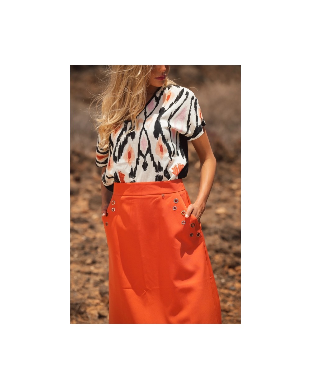 - Se combina fácilmente con faldas o pantalones lisos